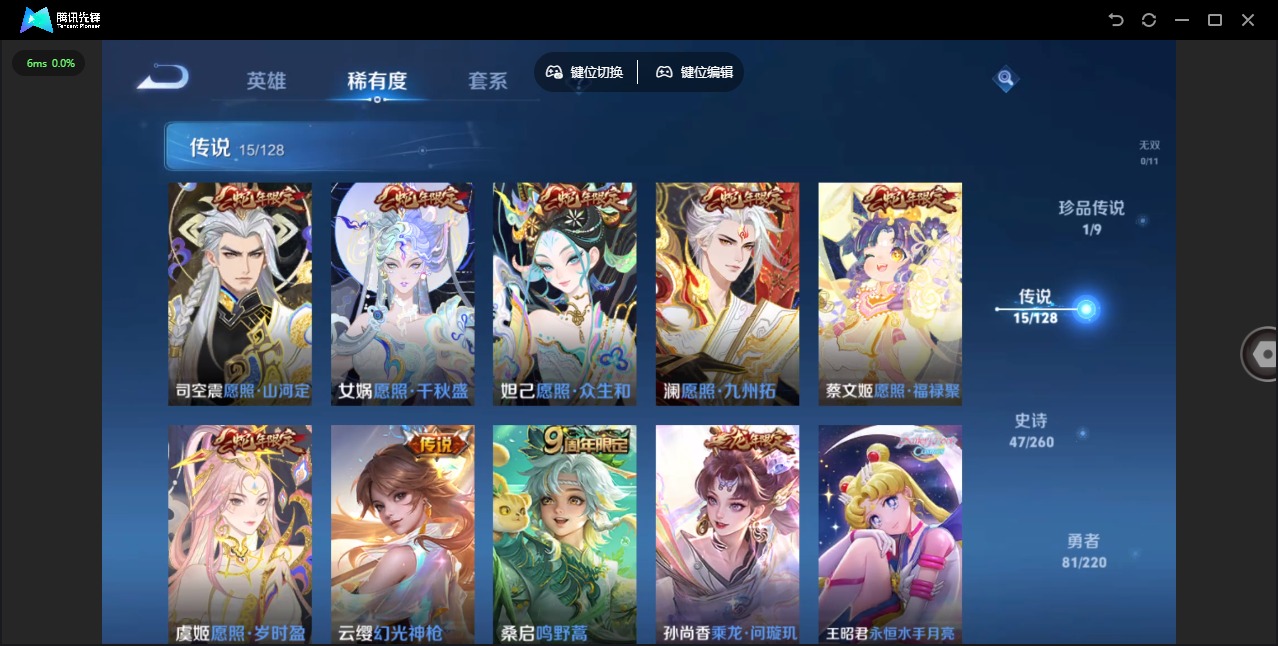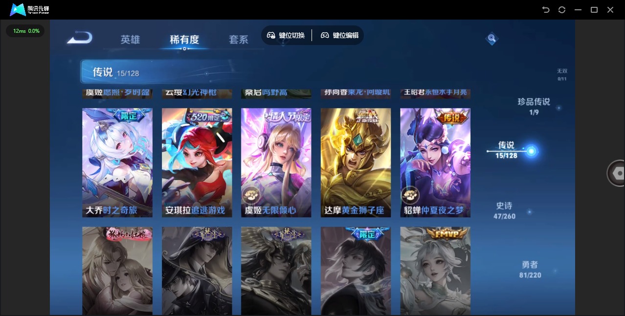 - [11884629]V9 2典藏 19传说 124英雄 275皮肤 可修改实名 优质装备:鸣剑·曳影,星域神启(倪克斯贼亮),云鹰飞将(小将军),炽阳神光,地狱火,仲夏夜之梦(大飞蛾),地狱之眼,胖达荣荣,淬星耀世,挚爱之约,挚爱花嫁,碎云,鹤羽星尊,澜逐花归海 珍宝阁皮:优雅恋人 限定皮:至尊宝,武陵仙君(小桃花),补天,时雨天司(水龙头),神威(电光马子),诗剑行,五谷丰年,青龙志(铠年限),冰锋战神,武圣,梁祝,辉光之辰,真爱至上,大圣娶亲,寅虎·心曲(虎婆),寅虎·赤拳(老虎年限) 史诗皮:星界战将,龙之律动,百相守梦-周瑜,遇见神鹿,紫霞仙子,电玩小子(小书包),白龙吟,黄金分割率,特工魅影,千年之狐,江河有灵,鹤归松栖(赵怀真),魅语,百解令(蒙犽),蒙恬荣光圣徽,无限星赏官,偶像歌手,晚萤,龙骑士(小龙虾),末日机甲-吕布,猫狗日记-孙策,时之恋人-孙尚香,乱世虎臣,节奏热浪,修罗,女仆咖啡,摇滚巨星,水果甜心,天才门将,星夜王子,功夫厨神,德古拉伯爵,暗隐猎兽者,幽灵船长,鬼剑武藏,暗渊魔法,心灵战警,舞动绿茵,地狱岩魂,拒霜思,缤纷独角兽,乘风破浪,逐浪之夏,水晶猎龙者,曙光守护者,箭羽风息,金属风暴,原初追逐者,圣诞狂欢,圣诞恋歌,鹰眼统帅,暗夜贵公子,黎明之约,赏金猎手,无心,未来纪元-赵云