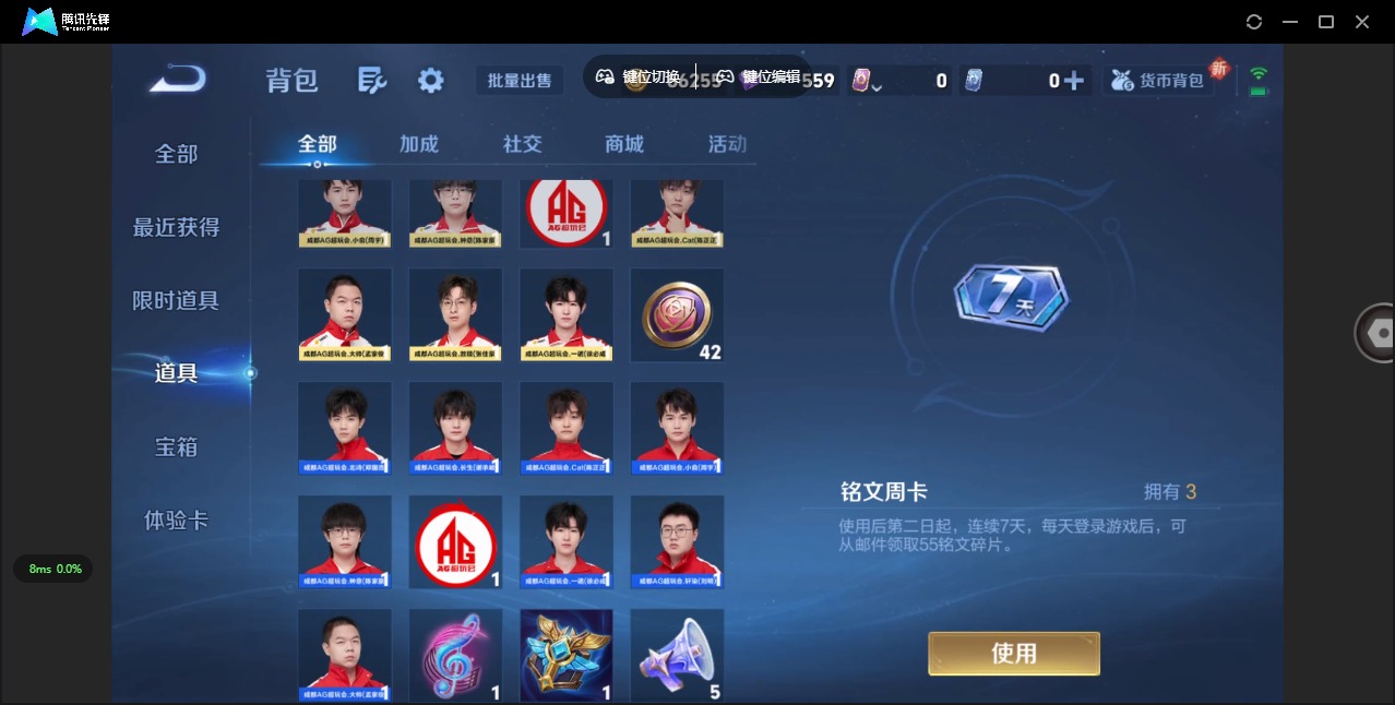 - [11683596]8粉装 3特效枪 1载具 4印记 可二次 可修改实名 身法装备:初号机 觉醒Ver.(新紫螳螂),8号机(新粉螳螂) 优质装备:玛莎拉蒂Ghibli(粉),M416心之恋语,奇异狩猎者,梦幻火箭(新101)(新火箭少女101粉色套装),天使彩虹糖,SCAR-L童趣迷兔,炙焰红王,冰霜白皇,AKM梦之光华,馨动时刻 热门装扮:沙场疾风,天星战神,初号机 觉醒Ver.(新紫螳螂),神秘黑猫,胖达圆圆,激萌罗小黑,暗夜魅影 四级特效枪:四级M416-心之恋语,四级AKM-梦之光华 三级特效枪:三级SCAR-L-童趣迷兔 紫色装扮:田园牧歌,轻风白浪,SS22特训,SS23特训,幻彩翩翩,娇憨猪猪,梦幻奶油,酸甜橘柚,萌趣咩咩,SS21特训,人气偶像,军械专家,冰川特警,SS20特训,暖风夏荷,飞驰魅影,音速流光,SS19特训,英勇保护者,浑天鲲鹏,甜心亚梦,虚音幻奏,电音精灵,瑞龙福将,团圆交子,SS17特训,月蓝流光,异彩先驱,缤纷焰火,SS18特训,阳光火鸡,酒红色名流,长空猛禽,雪山精英,霓虹极客,霓虹街区,青年教官,迎春赐吉,耀眼新星,蓝色运动,虎虎生威吉莉,魅力单车,鹤鸣,麻辣教官,黄色伏地魔,黄色名流,黄色运动,黑色伏地魔,极地朋克,橘黑制服,深蓝色名流,滨海假日,夏日音浪,完美偶像,帅气教官,幻世战舞者,探宝勇士,湖蓝色名流,滨海厨神,绮丽涂鸦,白熊同盟,白色伏地魔,破蛋小黄鸡,甜蜜告白,福星高照,空投萌叽,竞技达人朋克,红色运动,甜蜜熊情侣,牛气冲天,灰色格斗者,炫蓝之夏,牛气满满,猛禽,特殊使命,特训学院,猎鹰,萝兰蝴蝶,8号机(新粉螳螂),玉兔迎春,竞技名士,惊鸿侠骨,SS25特训,源星混沌,冥星暗影,闪耀新星,锦衣飞扬,粉红小猪,浪漫天命,丝绸行者,风华少年志,耀粉歌者,绯格组合,弄潮海豚,光之冒险 优质战备:初号机 觉醒Ver.降落伞,炙焰牛王降落伞,歌者泠鸢降落伞,天星战神降落伞,梦幻火箭降落伞,童趣迷兔降落伞,飞行器-风花雪月,风花雪月降落伞,暗星紫秘降落伞,飞行器-天之羽翼