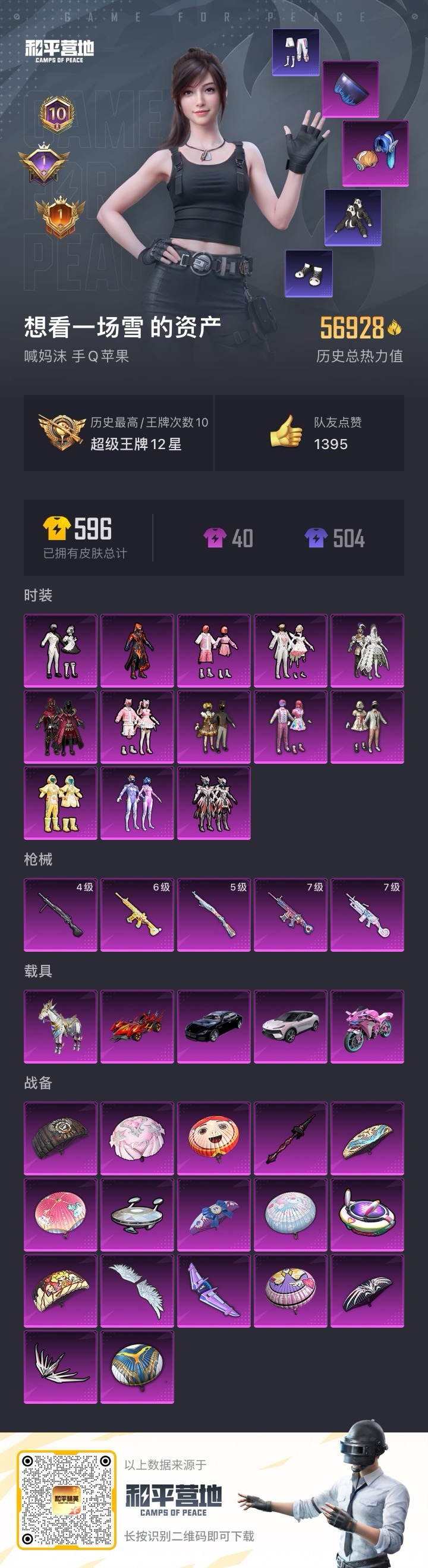 - PX_2020759- 苹果手Q-7王牌印记-有战神框-3粉装-7特效枪-1载具-40623热力值-77套装-121枪皮-2卓越印记-2传奇印记 【3粉装】,星穹咏叹调,玩偶服-猪猪侠,萨利娅 【7特效枪】SCAR-L-锦绣绵绵-5级 GROZA-镜光银凌-5级 AUG-暖羊咩咩-5级 Kar98K-圣域龙灵-2级 Kar98K-巳巳如意-5级 Mk14-甜梦熊击-5级 DP-28-千金淑猫-7级