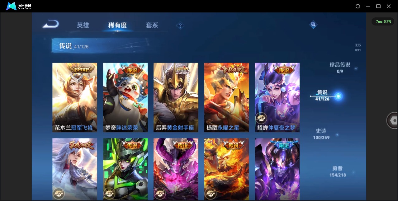 - [11498165]V7 7传说 123英雄 242皮肤 可修改实名 传说皮:黄金狮子座,仲夏夜之梦(大飞蛾),地狱之眼,末日机甲-孙尚香(绿蚂蚱),冠军飞将,云鹰飞将(小将军) 珍宝阁皮:女武神 限定皮:至尊宝,凤求凰(白切鸡),飞衡(韩信年限),遇见飞天,五谷丰年,梁祝,烈魂,天狼征服者,天狼绘梦者,李小龙,辉光之辰,如梦令-后羿,猪悟能,大圣娶亲 史诗皮:龙之律动,百相守梦-黄忠,化蝶舞,白龙吟,黄金分割率,特工魅影,千年之狐,冰冠公主,偶像歌手,龙骑士(小龙虾),猫狗日记-孙策,节奏热浪,摇滚巨星,水果甜心,星夜王子,暗隐猎兽者,地狱岩魂,纤云弄巧,繁星吟游(呼啦呼啦),乘风破浪,逐浪之夏,水晶猎龙者,原初追逐者,圣诞狂欢,鹰眼统帅,魅力维加斯,黎明之约,无心,未来纪元-赵云