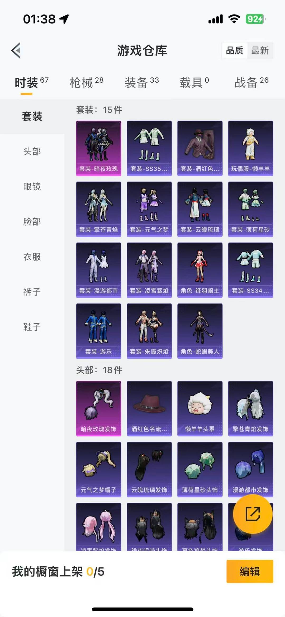- [11528892]1粉装 4特效枪 10印记 可二次 可修改实名 连体王者 身法装备:都市猎人,Mark.06(新蓝螳螂) 优质装备:都市猎人,GROZA-镜光银凌,AUG-暖羊咩咩,星穹咏叹调,Kar98K-巳巳如意 热门装扮:神秘黑猫,鹰眼刺客,都市猎人 稀有枪皮:DP-28-豹影疾电 五级特效枪:五级GROZA-镜光银凌,五级Kar98K-巳巳如意,五级DP-28-豹影疾电,五级AUG-暖羊咩咩 紫色装扮:SS22特训,SS23特训,娇憨猪猪,萌趣咩咩,SS21特训,SS31特训套装,六六大吉,冰川特警,冷焰舞者,北国孤狼,旭日情侣,SS30特训套装,SS33特训套装,顶瓜瓜,SS20特训,SS16特训,冰爽风暴,SS13特训,SS14特训,飞驰魅影,音速流光,极速竞梦,SS19特训,瑞龙福将,团圆交子,SS17特训,异彩先驱,缤纷焰火,SS18特训,都市魅力,酒红色名流,长空猛禽,雪山精英,霓虹极客,霓虹街区,青年教官,风暴特警,缤纷果语,荣耀,蓝彩潮人,蓝色守护者,虎虎生威吉莉,街头潮人,超能勇士,跃动心情,骑行爱好者,魅力单车,鹤鸣,麻辣教官,黄色伏地魔,黄色运动,黑色伏地魔,龙的传人,冰河战士,龙魂突击队,蝶变,香桃花海,极地朋克,极速红龙,柠萌假日,格斗先锋,海岛探路者,深蓝色名流,滨海假日,幻影武者,夏日音浪,幻世战舞者,怒火燎原,战地督导,探宝勇士,滨海厨神,绮丽涂鸦,疯狂小兔子,白色伏地魔,破晓战魂,破蛋小黄鸡,甜蜜告白,福星高照,空岛之星,空投萌叽,竞技勇士朋克,甜蜜熊情侣,王牌教练,牛气冲天,灰色格斗者,灼焰舞者,炫蓝之夏,牛气满满,猛禽,猎鹰,小熊娃娃,雏菊兔兔,萝兰蝴蝶,SS29特训,达芬奇,米开朗基罗,湖畔霞光,星途旅人,纯真浪花,热情海星,曼妙人鱼,SS28特训,Mark.06(新蓝螳螂),异域银装,鱼渊荷华,玉兔迎春,燕燕于飞,巳巳如意,森林游猎者,竞技名士,街头风暴,深海梦境,惊鸿侠骨,SS24特训(SS24特训套装),SS25特训,锦衣飞扬,粉红小猪,SS27特训,萌趣绒叽,华灯初上,SS26特训,智谋强哥,SS6特训,SS7特训,淡雅花蕊,SS8特训,SS12特训,SS9特训,耀粉歌者,SS32特训服(SS32特训套装),绯格组合,恋语绒绒,漫步者,蓝调潮人,冰冻风暴,光之冒险 优质战备:星途旅人降落伞,闲梦青缨降落伞,春暖花开降落伞,暗夜