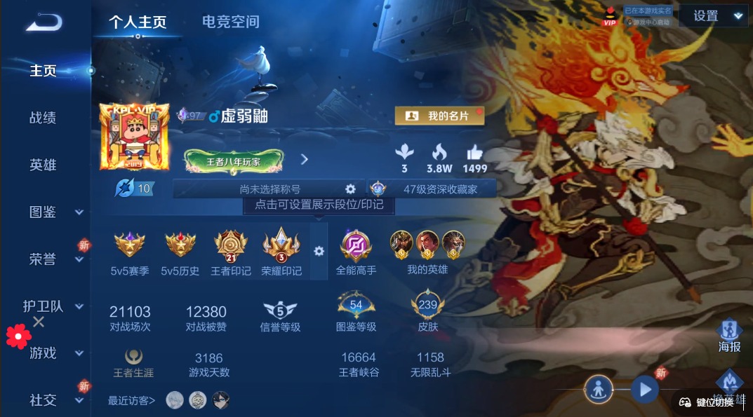 - [11553956]V8 1典藏 1珍品传说 18传说 124英雄 277皮肤 可修改实名 荣耀水晶:星域神启(倪克斯贼亮) 珍品传说:怪盗基德 传说皮:吕布曦玄引,幻光神枪,黄金狮子座,黄金射手座,地狱火,地狱之眼,猫影幻舞,乞巧织情,超时空战士-狄仁杰,浮生妄,妄想实况,澜逐花归海 珍宝阁皮:蔷薇恋人,女武神 限定皮:愿照·九州拓(澜年限),愿照·岁时盈(虞姬年限),逐霄战戟,鸣野蒿,武陵仙君(小桃花),时雨天司(水龙头),神威(电光马子),高山流水,五谷丰年,青龙志(铠年限),冰锋战神,游园惊梦,梁祝,御风骁将(吕布年限),李小龙,大圣娶亲,引擎之心,寅虎·御盾(廉颇年限),山海·玄木吟(马可年限) 史诗皮:飞车小橘子,撼地雄心,鸭鸭历险记-刘禅,龙之律动,雪豹·霜爪,百相守梦-百里守约,百相守梦-黄忠,战舞者,决胜骁骑,百相守梦-周瑜,化蝶舞,破空之剑,紫霞仙子,电玩小子(小书包),白龙吟,黄金分割率,特工魅影,江河有灵,百解令(蒙犽),冰冠公主,青蛇,偶像歌手,魅语,龙骑士(小龙虾),末日机甲-吕布,猫狗日记-孙策,猫狗日记-大乔,乱世虎臣,节奏热浪,修罗,女仆咖啡,摇滚巨星,水果甜心,绅士熊喵,天才门将,星夜王子,心灵骇客,功夫厨神,德古拉伯爵,幽灵船长,鬼剑武藏,心灵战警,乐园奇幻夜,天秀·启明,舞动绿茵,地狱岩魂,纤云弄巧,拒霜思,乘风破浪,逐浪之夏,月团寄思,水晶猎龙者,金属风暴,圣诞狂欢,圣诞恋歌,鹰眼统帅,暗夜贵公子,魅力维加斯,赏金猎手,寅虎·御盾,未来纪元-赵云