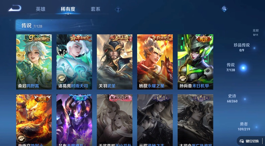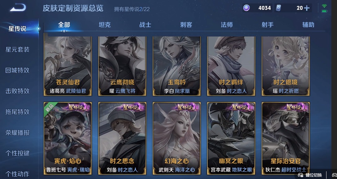 张飞虎魄,后羿辉光之辰,诸葛亮时雨天司,上官婉儿梁祝,马可波罗逐梦之星,桑启鸣野蒿,猪八戒猪悟能,孙悟空至尊宝,关羽武圣,关羽冰锋战神