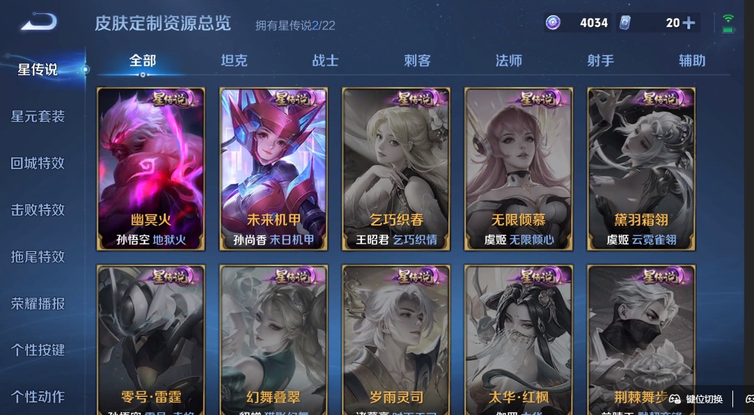 刘邦夺宝奇兵,夏侯惇朔风刀,老夫子醍醐杖,沈梦溪星空之诺,沈梦溪大漠名商,盾山御銮,曹操烛龙,苏烈千军破阵,典韦穷奇,达摩沙漠行僧,牛魔御旌,项羽苍威无极,鲁班七号狮舞东方,元歌云间偶戏,兰陵王金庭之子,裴擒虎擒涛扼浪,鲁班大师探海日志,明世隐疑决卦,蒙犽狂想玩偶喵,鬼谷子原初探秘者,张良古海寻踪,桑启海盐诗旅,狄仁杰万华元夜,芈月重明,程咬金演武夺筹,李元芳银河之约,李元芳云中旅人,弈星混沌棋,米莱狄御霄,钟馗神迹守卫,钟馗驱傩正仪,狂铁御狮,太乙真人饕餮