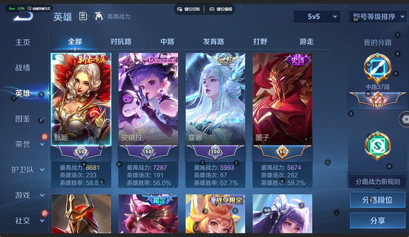 - PX_2066969-实名: 可修改 贵族等级: V7 英雄数: 123 皮肤数: 171 荣耀水晶: 弑枪猎影 传说皮: 黄金射手座,一念神魔,末日机甲-孙尚香,仲夏夜之梦,地狱之眼,乘龙·问璇玑,朵莉亚心动手记 限定皮: 遇见飞天,李小龙,至尊宝,高山流水,孙行者,时之祈愿-云中君,诗剑行,鸣野蒿