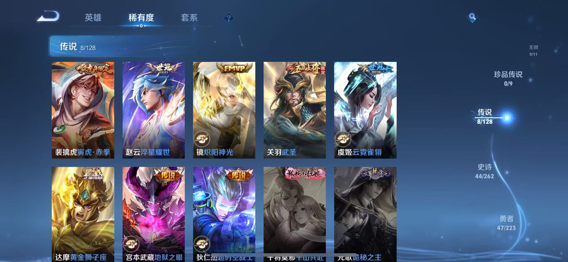 - [11524490]V8 3典藏 18传说 124英雄 238皮肤 可修改实名 女号 优质装备:杀手不太冷,鸣剑·曳影,神鉴启示录,黄金狮子座,黄金射手座,冠军飞将,一念神魔,云霓雀翎,末日机甲-孙尚香(绿蚂蚱),地狱火,零号·赤焰,淬星耀世,超时空战士-狄仁杰,无双飞将,音你闪耀(rap皮),妄想实况,澜逐花归海 传说皮:铠冥王哈迪斯 珍宝阁皮:蔷薇恋人 限定皮:至尊宝,梅西,时之彼端,时雨天司(水龙头),遇见飞天,高山流水,五谷丰年,梁祝,天狼狩猎者,逐梦之星,祈雪灵祝(雪兔子),李小龙,大圣娶亲 史诗皮:龙之律动,夜落电台,谪仙醉月,百相守梦-黄忠,黄金分割率,特工魅影,偶像歌手,龙骑士(小龙虾),冰冠公主,末日机甲-吕布,时之恋人-孙尚香,修罗,摇滚巨星,水果甜心,天才门将,星夜王子,功夫厨神,暗隐猎兽者,幽灵船长,鬼剑武藏,舞动绿茵,地狱岩魂,纤云弄巧,繁星吟游(呼啦呼啦),乘风破浪,逐浪之夏,水晶猎龙者,箭羽风息,金属风暴,原初追逐者,圣诞恋歌,鹰眼统帅,暗夜贵公子,魅力维加斯,黎明之约,未来纪元-赵云