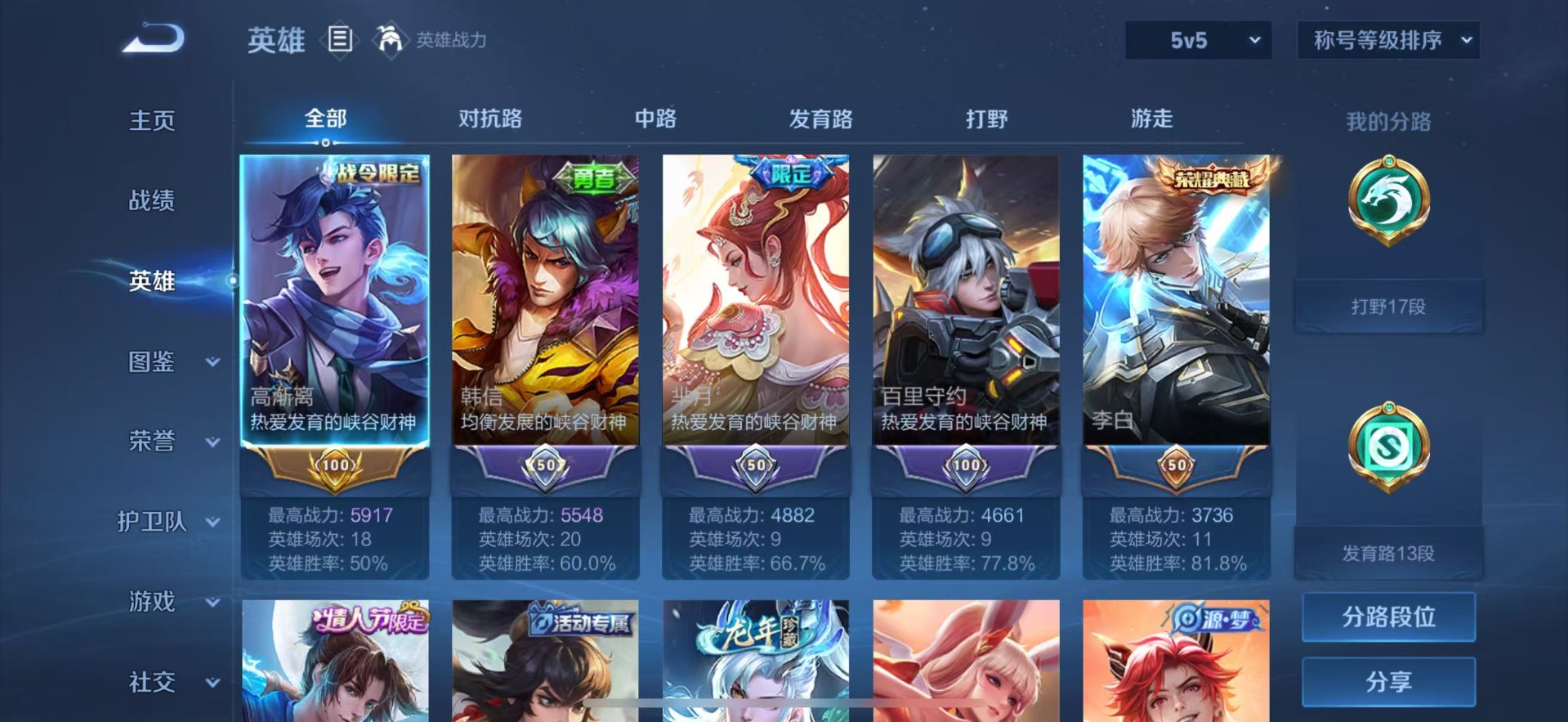 - [11597296]V7 1典藏 6传说 123英雄 240皮肤 可修改实名 女号 荣耀水晶:幻阙歌(貂蝉典藏) 传说皮:遇见胡旋,末日机甲-孙尚香(绿蚂蚱),云霓雀翎,久胜战神,澜逐花归海 珍宝阁皮:蔷薇恋人,女武神 限定皮:鸣野蒿,凤凰于飞,时之彼端,至美·乘鲤谣,遇见飞天,高山流水,游园惊梦,天狼绘梦者,李小龙,如梦令-嫦娥,一生所爱,青春决赛季,匿光追影者,寅虎·心曲(虎婆) 史诗皮:赞萌露比,龙之律动,蔬乡物语(鲁班七号),乘龙·聚宝船(安琪拉年限),琥珀纪元伽罗,化蝶舞,幻珠鲛人,遇见神鹿,电玩小子(小书包),黄金分割率,特工魅影,鹤归松栖(赵怀真),江河有灵,高渐离燃音魔法,雪夜绮愿(周瑜),百解令(蒙犽),匿光破解者,冰冠公主,晚萤,无限星赏官,魅语,暗夜猫娘,猫狗日记-孙策,猫狗日记-大乔,乱世虎臣,节奏热浪,女仆咖啡,摇滚巨星,水果甜心,绅士熊喵,天才门将,星夜王子,心灵骇客,暗隐猎兽者,幽灵船长,鬼剑武藏,舞动绿茵,诗语江南,纤云弄巧,繁星吟游(呼啦呼啦),拒霜思,缤纷独角兽,乘风破浪,逐浪之夏,曙光守护者,金属风暴,原初追逐者,圣诞恋歌,鹰眼统帅,魅力维加斯,黎明之约
