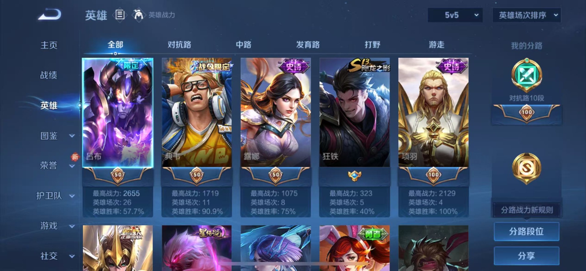 - [11608103]V4 1典藏 2传说 117英雄 103皮肤 可修改实名 优质装备:弑枪猎影(韩信典藏) 传说皮:幻光神枪 珍宝阁皮:玩趣恶龙 限定皮:愿照·岁时盈(虞姬年限),遇见飞天,五谷丰年 史诗皮:化蝶舞,紫霞仙子,特工魅影,江河有灵,猫狗日记-孙策,乱世虎臣,修罗,摇滚巨星,水果甜心,鬼剑武藏,心灵战警,乘风破浪,曙光守护者,金属风暴,原初追逐者,圣诞恋歌,鹰眼统帅,魅力维加斯