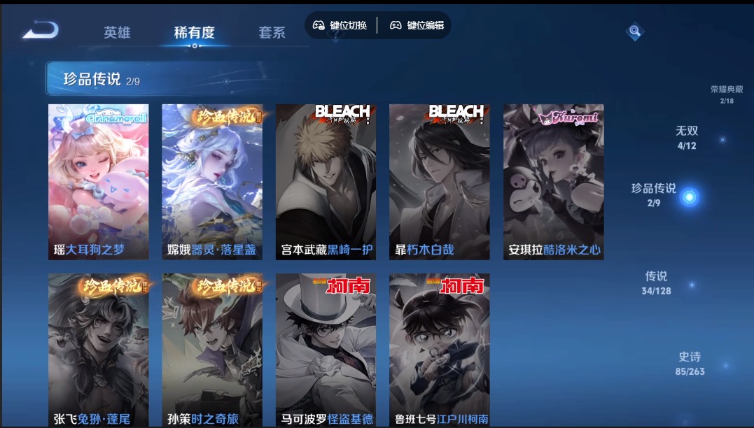 - PX_2113115-安卓QQ 171皮 贵族7级 1典藏 1珍品传说 1无双 7传说 59史诗【荣耀典藏】全息碎影【珍品传说】怪盗基德【无双限定】花合斗【传说皮肤】武圣,愿照·千秋盛,地狱火,山海·苍雷引,一念神魔,白虎志,琥珀纪元【史诗皮肤】石田雨龙,梁祝,纤云弄巧,心灵战警,无心,云间偶戏,暗隐猎兽者,天才门将,绅士熊喵,鸭鸭历险记,德古拉伯爵,如梦令,圣诞狂欢,龙骑士,猫狗日记,东方月初,