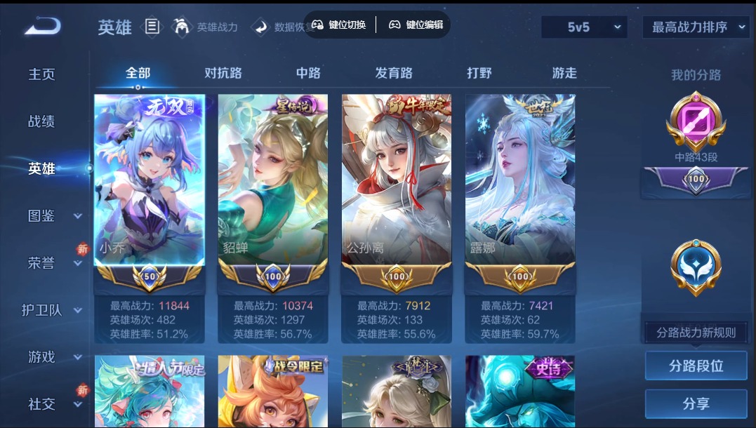 - [12090923]V10 5典藏 2无双 3珍品传说 46传说 125英雄 409皮肤 可修改实名 优质装备:全息碎影(猴子典藏),九霄神辉(木兰典藏),幻阙歌(貂蝉典藏),拾光映像(瑶典藏),器灵·螭龙剑,最初的交响(伽罗典藏),天机白泽,器灵·落星盏,黑崎一护,黄金狮子座,黄金射手座,冠军飞将,云鹰飞将(小将军),绛天战甲(鸡嘴战神),猫影幻舞,久胜战神,炽阳神光,一念神魔,末日机甲-孙尚香(绿蚂蚱),音你心动-小乔,地狱之眼,音你心动-周瑜,李逍遥,乞巧织情,时之恋人-刘备(电焊工),淬星耀世,超时空战士-狄仁杰,挚爱之约,无双飞将,灼幽烈阳,惊梅引,遇见神鼓,霜月吟,艾琳觅芳踪,金乌负日,黄金天蝎座,千劫归真 珍品传说:兔狲·蓬尾 传说皮:典韦战鼓燎原,九山相柳,云诺千山,续相思,祥瑞亨通,幻光神枪 珍宝阁皮:优雅恋人,蔷薇恋人,玩趣恶龙 限定皮:愿照·九州拓(澜年限),愿照·福禄聚(蔡文姬年限),愿照·岁时盈(虞姬年限),愿照·山河定(司空震年限),愿照·众生和(妲己年限),愿照·千秋盛(女娲年限),武陵仙君(小桃花),傲雪梅枪,时雨天司(水龙头),神威(电光马子),高山流水,诗剑行,匿光决锋者,降魔,五谷丰年,青龙志(铠年限),冰锋战神,游园惊梦,御风骁将(吕布年限),逐梦之音,祈雪灵祝(雪兔子),李小龙,如梦令-后羿,猪悟能,引擎之心,百木心枪,玉兔公主,深海之息(深海大菠萝),冰霜神祇 史诗皮:赞萌露比,鸭鸭历险记-刘禅,器灵·浮梦炉,糖绘人间,狼魂孤将,化蝶舞,星界战将,龙之律动,雪豹·霜爪,石田雨龙,百相守梦-周瑜,茶境仙,蔬乡物语(鲁班七号),百相守梦-黄忠,守夜人,遇见神鹿,紫霞仙子,苍穹之光,电玩小子(小书包),黄金分割率,特工魅影,千年之狐,永昼,江河有灵,匿光侦查者,鹤归松栖(赵怀真),魅语,百解令(蒙犽),高渐离燃音魔法,蒙恬荣光圣徽,冰冠公主,青蛇,偶像歌手,白蛇,晚萤,百相守梦(刘备),暗夜猫娘,银翎春语,龙骑士(小龙虾),末日机甲-吕布,猫狗日记-孙策,猫狗日记-大乔,乱世虎臣,节奏热浪,修罗,女仆咖啡,摇滚巨星,水果甜心,绅士熊喵,天才门将,星夜王子,心灵骇客,功夫厨神,德古拉伯爵,暗隐猎兽者,幽灵船长,鬼剑武藏,心灵战警,乐园奇幻夜,天秀·启明,舞动绿茵,地狱岩魂,纤云弄巧,拒霜思,缤纷独角兽,乘风破浪,逐浪之夏,水晶猎龙者,曙光守护者,