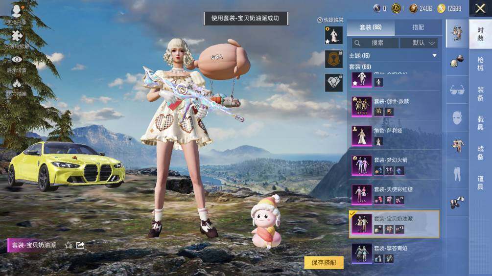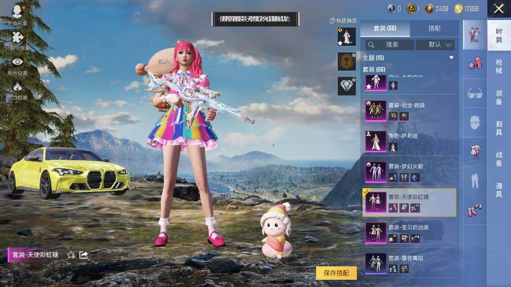 【粉色套装】:粉装-宝贝奶油派,粉装-天使彩虹糖,粉装-梦幻火箭,套装-创世·救赎,角色-萨利娅,角色-女娲灵识