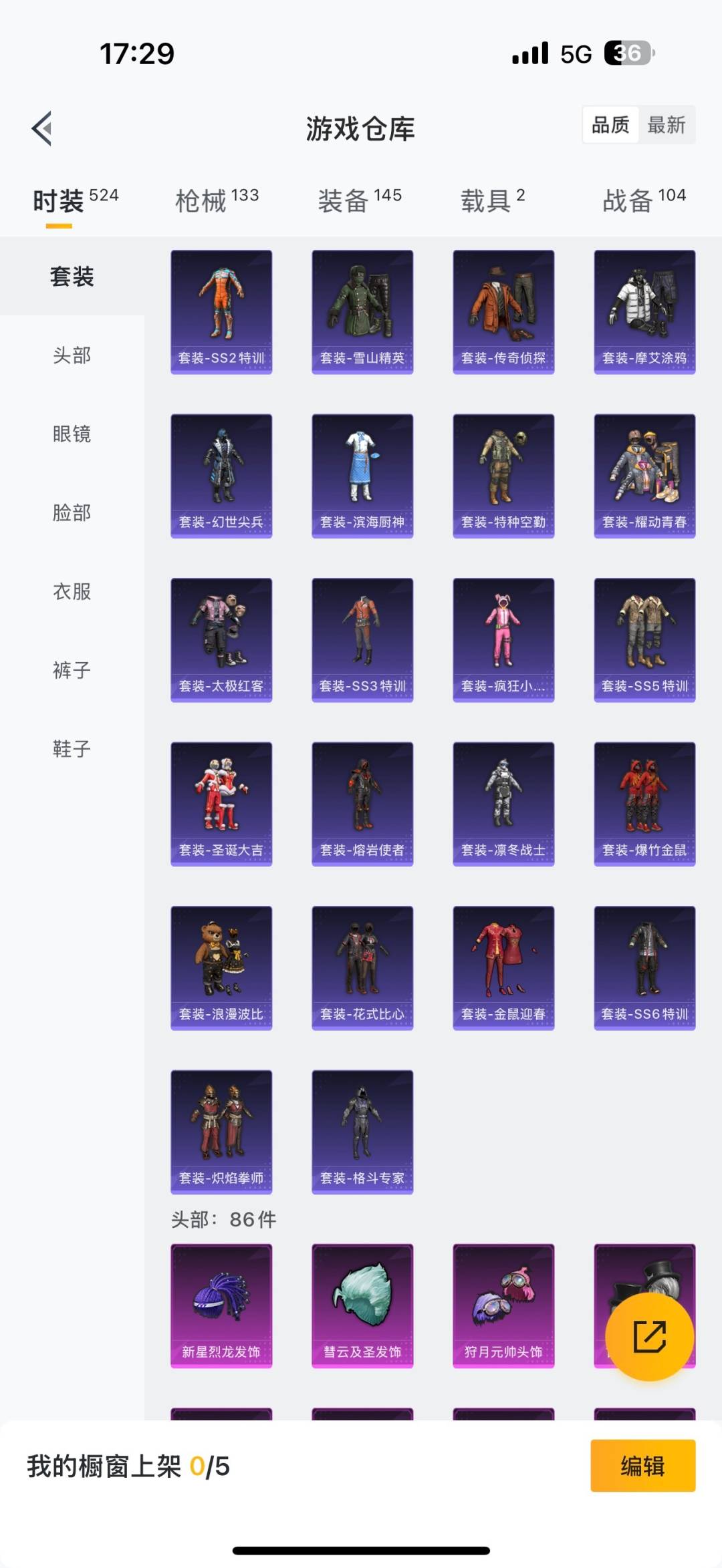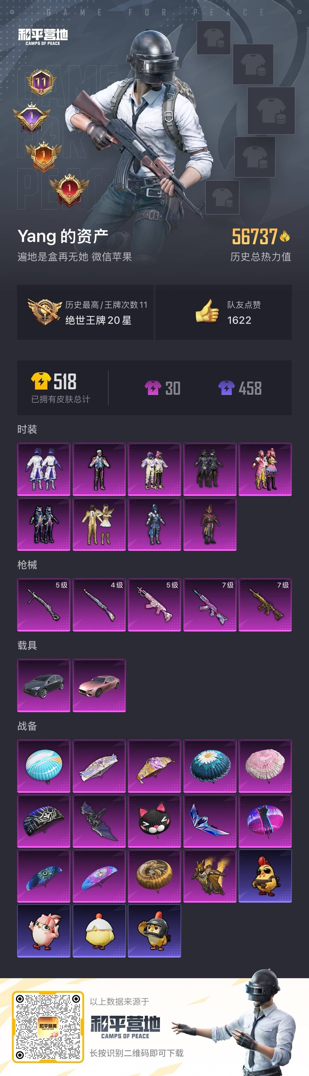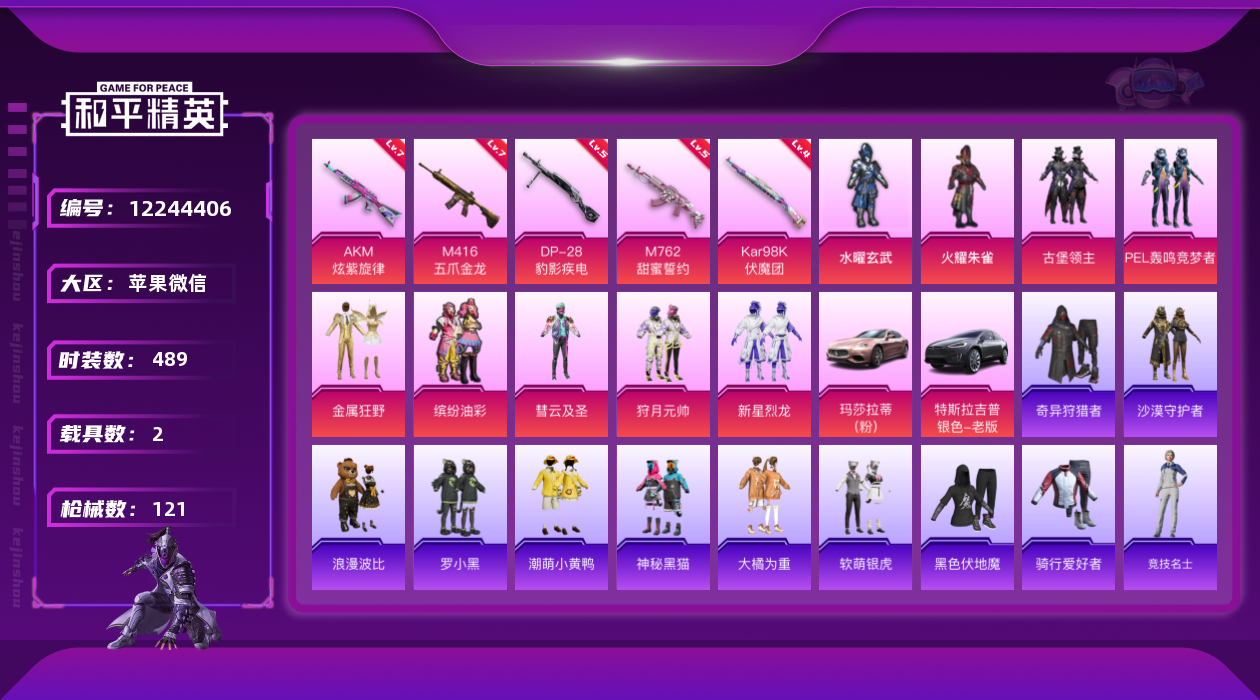 [12244406]9粉装 5特效枪 2载具 11印记 可二次 可修改实名 身法装备:暗影哥特(红眼罩),沙漠守护者 优质装备:玛莎拉蒂Ghibli(粉),特斯拉Model X(冷光银),沙漠守护者(黑丝),M762甜蜜誓约,AKM炫紫旋律,Kar98K伏魔团,M416五爪金龙,奇异狩猎者,古堡领主,火曜朱雀,水曜玄武,金属狂野,缤纷油彩(猪妹猪脸妹),彗云及圣,PEL轰鸣竞梦者,新星烈龙(小白龙),狩月元帅,七级AKM-炫紫旋律,七级M416-五爪金龙 热门装扮:沙漠守护者,神秘黑猫,软萌银虎,罗小黑,大橘为重,潮萌小黄鸭,浪漫波比 稀有枪皮:DP-28-豹影疾电 五级特效枪:五级M762-甜蜜誓约,五级DP-28-豹影疾电 四级特效枪:四级Kar98K-伏魔团 紫色装扮:SS21特训,SS2特训,SS3特训,SS5特训,六六大吉,军械专家,凛冬战士,刚毅裁决者,北国孤狼,旭日情侣,SS33特训套装,5.56爱好者,SS20特训,银白舞王,SS13特训,吉莉礼服,电音精灵,瑞龙福将,团圆交子,SS17特训,SS18特训,都市漫游者,金鼠迎春,长空猛禽,雪山征服者,雪山精英,霓虹街区,耀动青春,耀眼新星,蓝彩潮人,蓝色守护者,虎虎生威吉莉,跃动心情,风行保卫者,飞行日记,骑行爱好者,麻辣教官,黑色伏地魔,朋克之心,格斗先锋,沙漠兵团,海滨突袭者,滨海假日,圣诞大吉,夏日音浪,夜莺强袭者,幻世保卫者,幻世战舞者,怒火燎原,战地菁英,探宝勇士,滨海厨神,绮丽涂鸦,疯狂小兔子,破蛋小黄鸡,甜蜜告白,空投萌叽,竞技勇士朋克,甜蜜熊情侣,王牌教练,灰色格斗者,热血青春,熔岩使者,特战装甲,特殊使命,特训学院,镭射皇者,森林游猎者,竞技名士,暗影哥特(红眼罩),粉红小猪,SS26特训,春光漫游,快闪甜心,炽焰拳师,格斗专家,SS6特训,拳皇97八神庵,SS7特训,人鱼之吻,深蓝冒险家,迷域探索者,顽皮玉兔,幻世尖兵,花式比心,太极红客,摩艾涂鸦,SS8特训,乘风破浪,粉甜马卡龙,逆风勇士,SS12特训,PEL躁动竞梦者,纯白誓言,众神之王,智慧之神,SS9特训,舞夜骑士,红酒骑士,不夜海上花,风华少年志,白月香洋装,SS10特训,暗夜契约,神奈川冲浪里,荷鲁斯之眼,机械英豪,机械征服者,SS11特训,绯格组合,传奇侦探,特种空勤,海上生明月,爆竹金鼠 优质战备:圣堂之誓降落伞,沙丘之主降落伞,