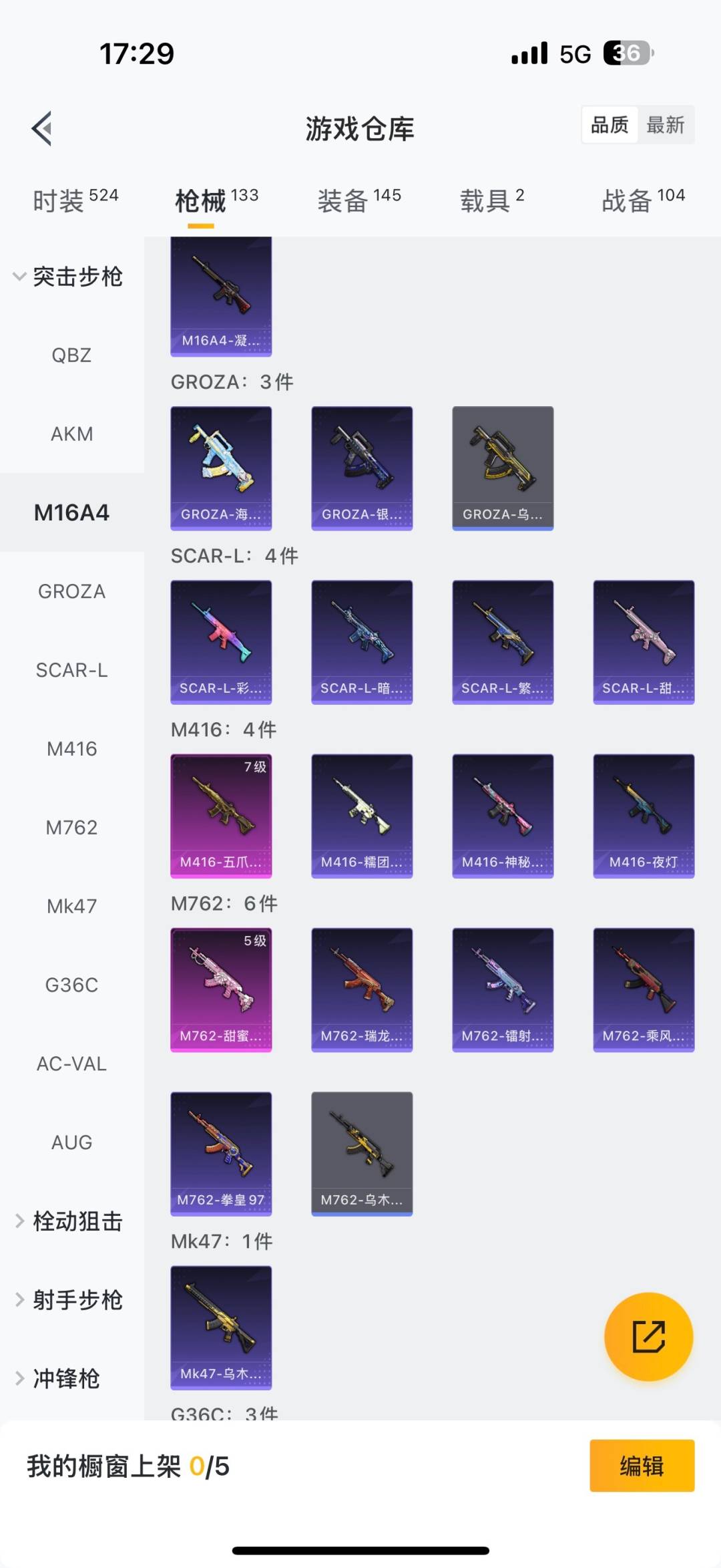 AKM-炫紫旋律,M416-五爪金龙,M762-甜蜜誓约,Kar98K-伏魔团