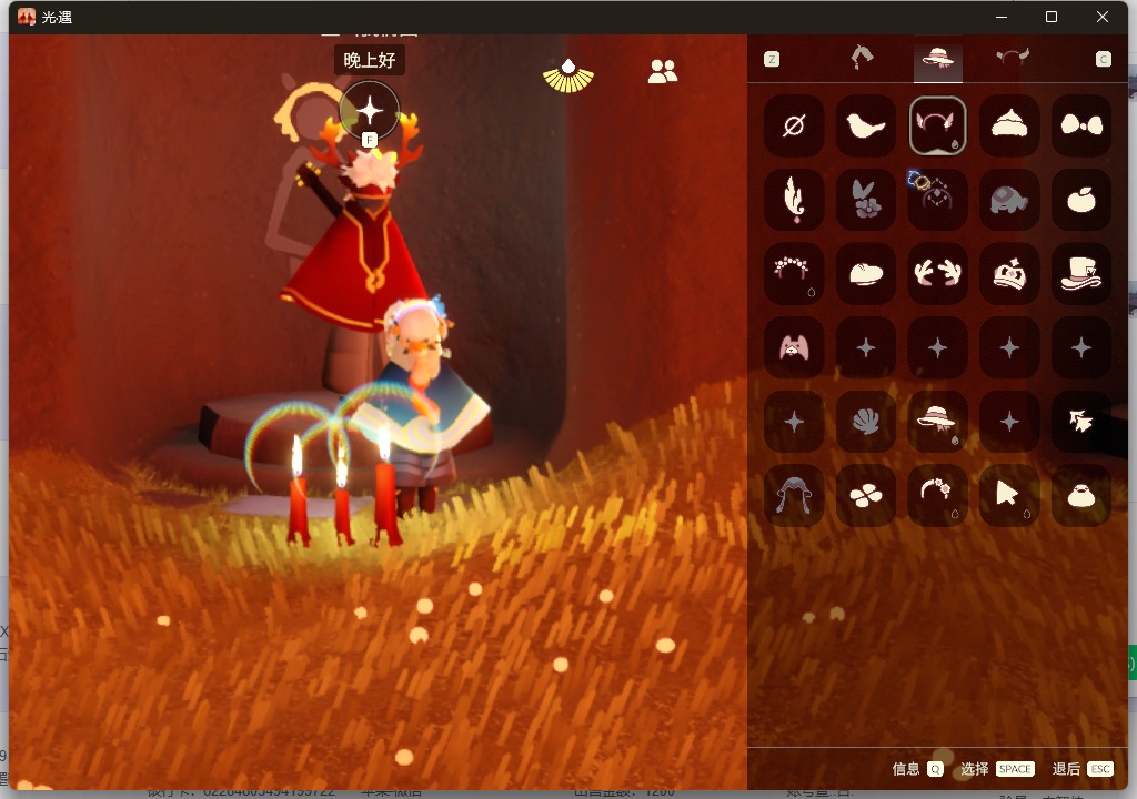 - [11682386]【蜡烛】54 【爱心】19 【稀有礼包】神鹿祝福礼包,雪花发夹,小狗周年头饰,四叶草头饰,创始人斗篷,狐狸背包,大橘大利,金鳞耳饰 【毕业物品】设计师长袍,彩染围巾斗篷 【热门复刻】绿芽,武士裤,正太头,花环长发,平顶帽,白金斗篷