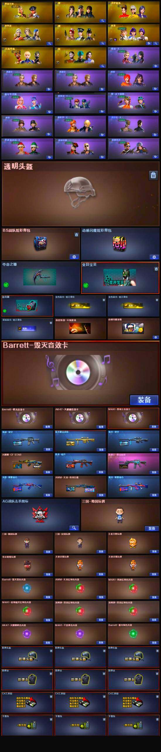 【音效卡】:AK47-火麒麟音效卡,M4A1-雷神-云海游龙音效卡,M4A1-黑骑士音效卡,Barrett-毁灭音效卡,Barrett-极光音效卡