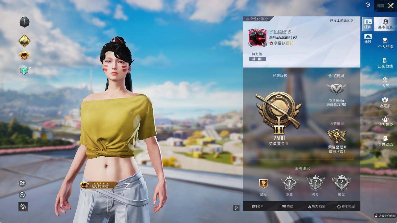 - QQ 可二次 皮肤资产价值145670 使用源晶点数2040 拥有皮肤171 段位Lv.144黄金II 步枪45 近战武器20 手枪VCT3 手枪37 狙击枪21 套装12 霰弹枪11 机枪12 冲锋枪19 英雄27 热门卡面11 热门挂饰18