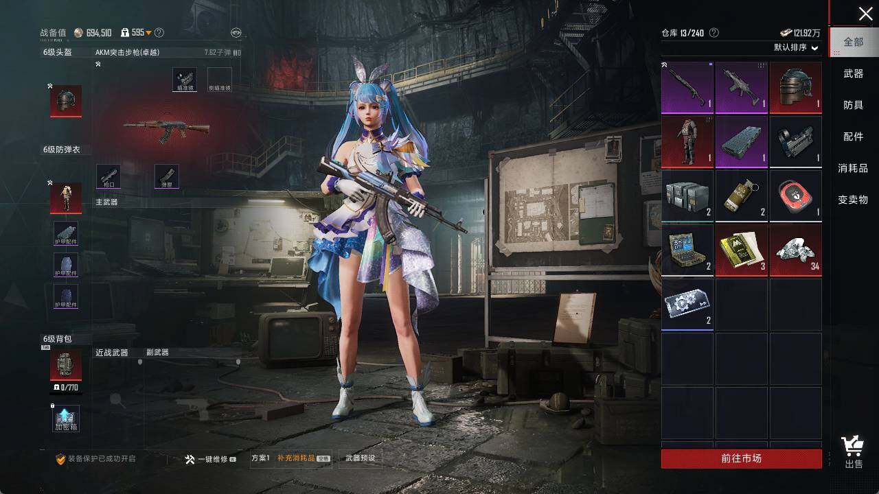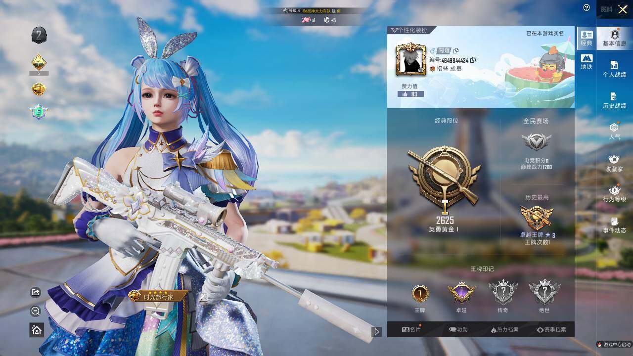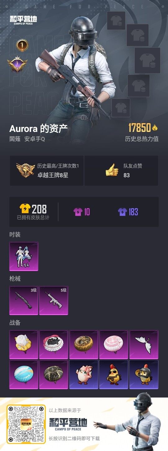- [11229005]实名: 可修改 时装数: 585 载具数: 9 枪械数: 231 战备数: 156 神级装扮: 镜域双华-欧若拉 热门装扮: 奇异狩猎者,梦幻火箭(新101),星之彼岸,天之羽翼,紫电风暴,赤焰黑爵,寒光使者,第五大道,呆萌星弥,璀璨巨星,未来歌姬,暖暖奶龙,傲傲奶龙,繁龙极客,美雪,美琪,创世·救赎,星穹咏叹调 载具: 合金龙骨(蓝),兰博基尼Estoque(银翼灰),乔治·巴顿战车(鎏金黑),宾利欧陆GT敞篷(火焰橘),杜卡迪 Panigale V4(杜卡迪红),照夜玉狮子,时空跃影(星辉银),护世瑞兽,辉羽雀灵自行车 稀有枪皮: MG3洛神天依,Kar98K未来歌姬,爆炸猎弓雪梅暗香,M24莲影清波,SCAR-L彩装战姬,AKM绿萝繁花,M24镜域双华,Kar98K-巳巳如意,MK14-盛世惊鸿,Vector-最终圣卫者,汤姆逊-热量炸弹,镰刀-幽影之判,DP-28-豹影疾电,MG-36-沧焰双生