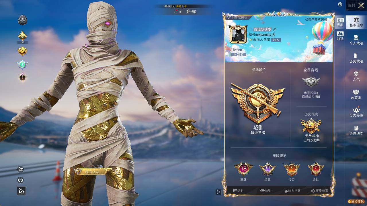 [12248254]素材身法号/无敌战神框1/绝世印记7/老木乃伊/地铁满天赋/M416-至情至圣(九级)【特价急出/详情看图】:苹果 微信-无敌战神框-1神装-19粉装-15特效枪-2载具-5粉色飞行器-8.7w热力值-18王牌印记-189套装-241枪皮【红色神装等级】:沙丘之主-图卡盟(二级)【热门品类】:粉装-雪国幻梦,粉装-梦幻火箭,粉装-缤纷油彩,套装-浪漫天命,套装-都市猎人,套装-冥河战士,套装-小丑鱼,套装-奇异狩猎者,套装-胖达团团,套装-胖达圆圆,套装-龟仙人,套装-暗影哥特,套装-粉红小猪【粉色载具】:兰博基尼Estoque(银翼灰),合金龙骨(绿)【粉色套装】:粉装-未来战士,粉装-粉色回忆,粉装-雪国幻梦,粉装-梦幻火箭,粉装-缤纷油彩,粉装-放客神游,粉装-炙焰红王,粉装-暗夜玫瑰,角色-洛天依,角色-零号机款机体服,角色-初号机款机体服,粉装-绚金瑰梦,粉装-甜梦小狐,粉装-星夜魔法师,粉装-第五大道,粉装-纯珍童话,粉装-傲傲奶龙,角色-圣堂之誓,粉装-星穹咏叹调【粉色枪皮等级】:AKM-梦之光华(五级),SCAR-L-童趣迷兔(七级),M416-心之恋语(一级),M416-至情至圣(九级),GROZA-焦糖拿铁(五级),AUG-星之彼岸(五级),UMP45-相思残雪(三级),Vector-飒粉甜心(四级),AKS-74U-星穹咏叹调(五级),P90-沙丘之主(三级),Kar98K-巳巳如意(五级),M417-第五大道(一级),DP-28-豹影疾电(五级),MG3-梦幻舞会(五级),破片手榴弹-美味星星糖(六级)【粉色飞行器】:星之彼岸飞行器,齐天大圣飞行器,星夜魔法师飞行翼,镜光幻境飞行翼,沙丘之主天马
