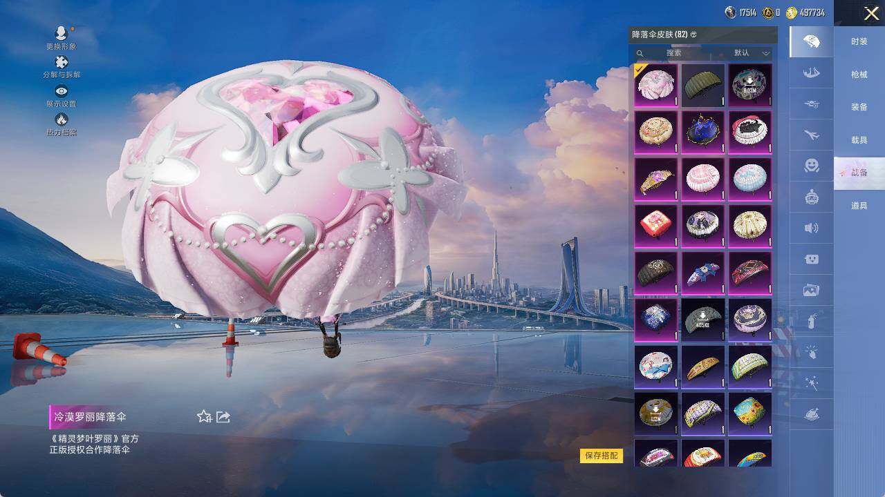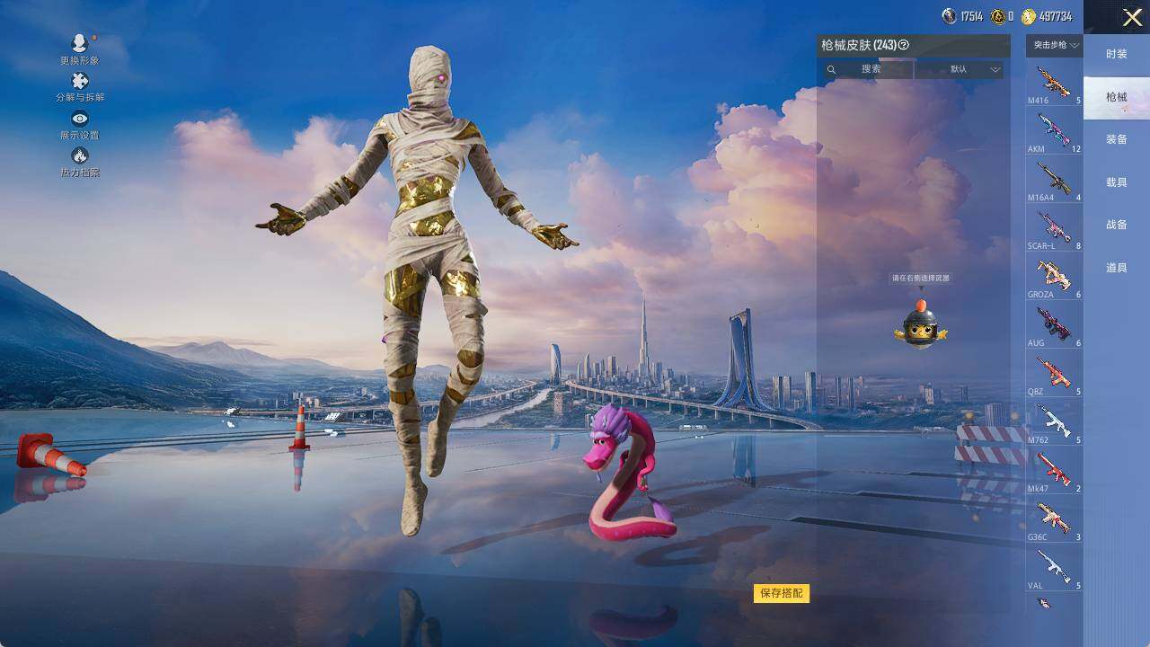 AKM-梦之光华,SCAR-L-童趣迷兔,M416-心之恋语,M416-至情至圣,GROZA-焦糖拿铁,AUG-星之彼岸,UMP45-相思残雪,Vector-飒粉甜心,P90-沙丘之主,Kar98K-巳巳如意,M417-第五大道,MG3-梦幻舞会
