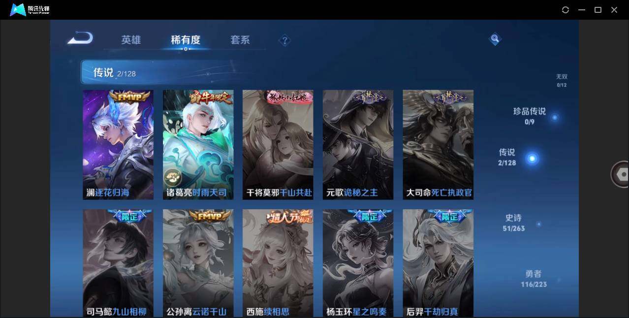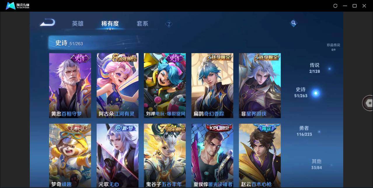 - [11823163]V8 3典藏 15传说 125英雄 227皮肤 可修改实名 优质装备:鸣剑·曳影,全息碎影(猴子典藏),银白咏叹调(倪克斯侍卫),云鹰飞将(小将军),一念神魔,仲夏夜之梦(大飞蛾),李逍遥,时之恋人-刘备(电焊工),淬星耀世,无双飞将,山海·炽霜斩(李信年限),灼幽烈阳,夜礼服假面 珍宝阁皮:胡桃夹子,蔷薇恋人 限定皮:凤求凰(白切鸡),异界灵契(白毛香),傲雪梅枪,高山流水,诗剑行,怒海麟威,五谷丰年,青龙志(铠年限),游园惊梦,李小龙,逐梦之影,辉光之辰,孙行者,青春决赛季,匿光追影者,山海·玄木吟(马可年限) 史诗皮:星界战将,东方月初,海诺心动手记,紫霞仙子,电玩小子(小书包),白龙吟,黄金分割率,特工魅影,千年之狐,江河有灵,蒙恬荣光圣徽,冰冠公主,青蛇,偶像歌手,暗夜猫娘,龙骑士(小龙虾),猫狗日记-孙策,乱世虎臣,节奏热浪,修罗,女仆咖啡,水果甜心,绅士熊喵,星夜王子,心灵骇客,时之奇旅-安琪拉,暗隐猎兽者,鬼剑武藏,心灵战警,舞动绿茵,拒霜思,缤纷独角兽,乘风破浪,逐浪之夏,水晶猎龙者,曙光守护者,金属风暴,原初追逐者,鹰眼统帅,黎明之约,赏金猎手,无心,未来纪元-赵云