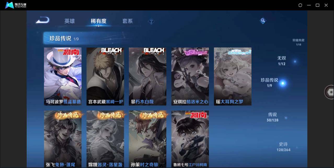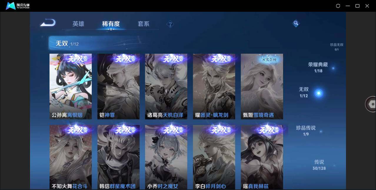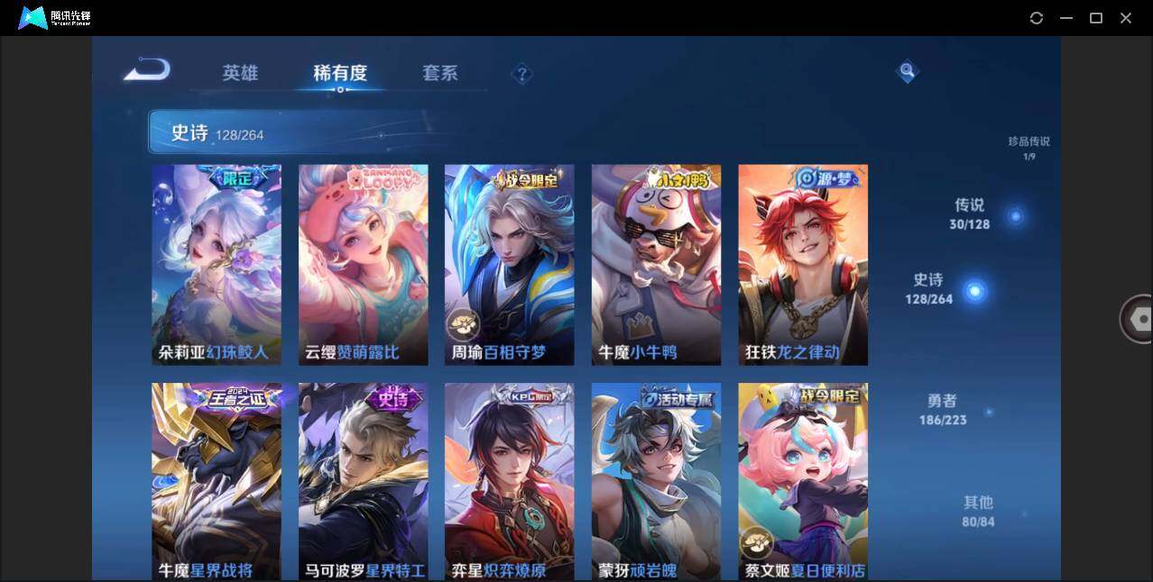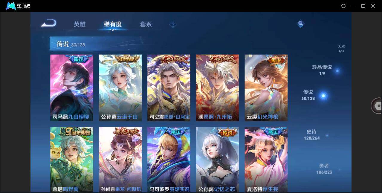 - [12255666]V8 2典藏 1珍品传说 22传说 124英雄 386皮肤 可修改实名 优质装备:鸣剑·曳影,星域神启(倪克斯贼亮),朽木白哉,黄金狮子座,久胜战神,炽阳神光,一念神魔,末日机甲-孙尚香(绿蚂蚱),地狱火,地狱之眼,时之恋人-刘备(电焊工),超时空战士-狄仁杰,无双飞将,炽翼辉光(娃娃菜牛角包),记忆之芯(机甲兔),澜逐花归海,千山共赴,涂山容容 传说皮:落雪白狼,幻光神枪 珍宝阁皮:妄想食味,蔷薇恋人,女武神 限定皮:逐霄战戟,鸣野蒿,至尊宝,白虎志(电光耗子),凤求凰(白切鸡),傲雪梅枪,白晶晶,时雨天司(水龙头),神威(电光马子),飞衡(韩信年限),五谷丰年,游园惊梦,梁祝,逐梦之星,烈魂,李小龙,逐梦之影,辉光之辰,霸王别姬-虞姬,猪悟能,大圣娶亲,引擎之心,冰霜恋舞曲,寅虎·赤拳(老虎年限),玉兔公主 史诗皮:鸭鸭历险记-刘禅,化蝶舞,龙之律动,灵蛊蚀心,星界战将,石田雨龙,百相守梦-周瑜,茶境仙,百相守梦-黄忠,涂山红红,东方月初,蒙犽顽岩魄,蔬乡物语(鲁班七号),百相守梦-百里守约,紫霞仙子,苍穹之光,电玩小子(小书包),黄金分割率,特工魅影,千年之狐,永昼,冰冠公主,江河有灵,蒙恬荣光圣徽,晚萤,偶像歌手,龙骑士(小龙虾),末日机甲-吕布,猫狗日记-孙策,猫狗日记-大乔,时之恋人-孙尚香,乱世虎臣,节奏热浪,修罗,女仆咖啡,摇滚巨星,水果甜心,绅士熊喵,天才门将,星夜王子,心灵骇客,功夫厨神,德古拉伯爵,暗隐猎兽者,幽灵船长,鬼剑武藏,心灵战警,乐园奇幻夜,舞动绿茵,地狱岩魂,繁星吟游(呼啦呼啦),拒霜思,缤纷独角兽,乘风破浪,逐浪之夏,月团寄思,水晶猎龙者,曙光守护者,热力回旋,箭羽风息,金属风暴,原初追逐者,圣诞狂欢,圣诞恋歌,鹰眼统帅,暗夜贵公子,魅力维加斯,黎明之约,赏金猎手,未来纪元-赵云