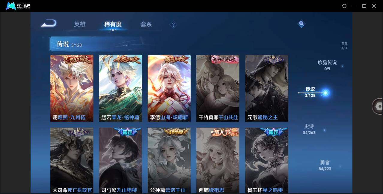 - PX_2065021-【190皮8传说 至尊宝九州拓云鹰飞将】:安卓Q-V5-永恒钻石IV段位-124英雄-190皮肤-0典藏-0珍品无双-0无双-0珍品传说-8传说-46史诗 【内测皮肤】:孙尚香蔷薇恋人,狂铁特工战影 【传说皮肤】:孙悟空地狱火,孙尚香末日机甲,达摩黄金狮子座,曜云鹰飞将,镜炽阳神光,桑启鸣野蒿,云缨幻光神枪,澜愿照九州拓 【限定皮肤】:狄仁杰阴阳师,赵云皇家上将,赵云龙胆,孙