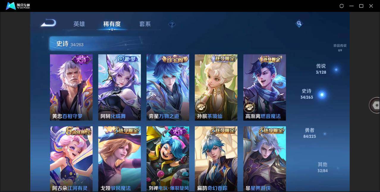 - [12259798]V9 5典藏 1无双 16传说 125英雄 285皮肤 可修改实名 优质装备:星空梦想(太空人),无限飓风号(高达),鸣剑·曳影,银白咏叹调(倪克斯侍卫),弑枪猎影(韩信典藏),真我赫兹(瑶)(瑶无双),末日机甲-孙尚香(绿蚂蚱),地狱火,仲夏夜之梦(大飞蛾),音你心动-小乔,淬星耀世,超时空战士-狄仁杰,遇见胡旋,碎云,记忆之芯(机甲兔),妄想实况 珍宝阁皮:妄想食味 限定皮:至尊宝,白虎志(电光耗子),太华(伽罗年限),梅西,傲雪梅枪,神威(电光马子),飞衡(韩信年限),遇见飞天,高山流水,五谷丰年,武圣,梁祝,御风骁将(吕布年限),天狼狩猎者,岱宗(典韦年限),逐梦之音,天狼征服者,李小龙,逐梦之影,永曜之星,霸王别姬-虞姬,孙行者,青春决赛季,乒乒小将,深海之息(深海大菠萝) 史诗皮:石田雨龙,百相守梦-黄忠,紫霞仙子,苍穹之光,白龙吟,千年之狐,冰冠公主,白蛇,真我赫兹(百里守约),高渐离燃音魔法,无限星赏官,偶像歌手,龙骑士(小龙虾),暗夜猫娘,猫狗日记-大乔,节奏热浪,女仆咖啡,水果甜心,绅士熊喵,天才门将,星夜王子,时之奇旅-安琪拉,功夫厨神,德古拉伯爵,暗隐猎兽者,幽灵船长,鬼剑武藏,心灵战警,乐园奇幻夜,天秀·启明,舞动绿茵,地狱岩魂,诗语江南,纤云弄巧,缤纷独角兽,乘风破浪,水晶猎龙者,金属风暴,圣诞狂欢,鹰眼统帅,魅力维加斯,天秀·音浪,未来纪元-赵云