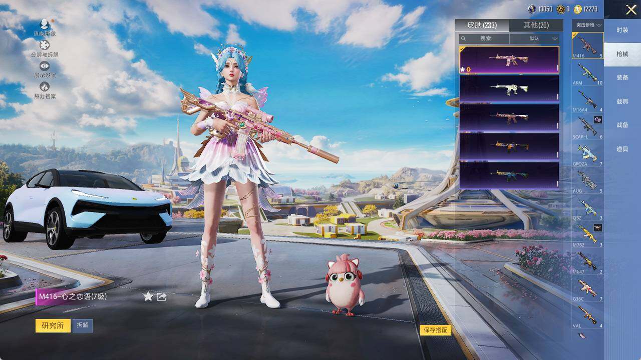 AKM-绿萝繁花,M416-心之恋语,UMP45-量子极限,Kar98K-创世·救赎,Kar98K-巳巳如意,MG3-炙焰牛王,PKM-天星战神