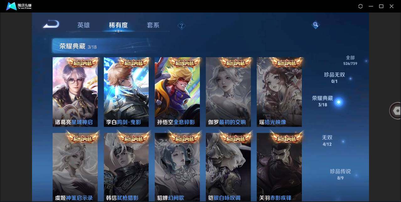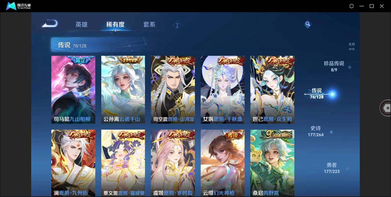 关羽冰锋战神,牛魔奔雷神使,貂蝉逐梦之音,吕布御风骁将,诸葛亮时雨天司,赵云龙胆,关羽武圣,黄忠烈魂,张飞虎魄,马超神威,庄周玄嵩,典韦岱宗,甄姬幽恒,韩信飞衡,曹操天狼征服者,裴擒虎天狼狩猎者,孙膑天狼运算者,铠青龙志,百里玄策白虎志,花木兰瑞麟志,苏烈玄武志,百里守约朱雀志,花木兰默契交锋,孙悟空至尊宝,雅典娜神奇女侠,妲己热情桑巴,干将莫邪冰霜恋舞曲,安琪拉魔法小厨娘,赵云引擎之心,孙悟空美猴王,庄周云端筑梦师,鲁班七号乒乒小将,猪八戒猪悟能,孙悟空孙行者,甄姬女儿国国王,韩信傲雪梅枪,裴擒虎寅虎·赤拳,瑶时之祈愿,赵云百木心枪,公孙离玉兔公主,露娜启示之音,后羿无尽星芒,马可波罗深海之息,金蝉唐三藏,娜可露露前尘镜,橘右京枫霜尽,妲己时之奇旅,王昭君星穹之声,不知火舞绯月行,上官婉儿神器·万象笔,盾山梦圆繁星,墨子降魔,李白诗剑行,马可波罗山海·玄木吟,瑶山海·碧波行,兰陵王影龙天霄,西施至美·乘鲤谣,夏侯惇霜北刀,桑启鸣野蒿,澜愿照·九州拓,蔡文姬愿照·福禄聚,虞姬愿照·岁时盈,司空震愿照·山河定,妲己愿照·众生和,女娲愿照·千秋盛
