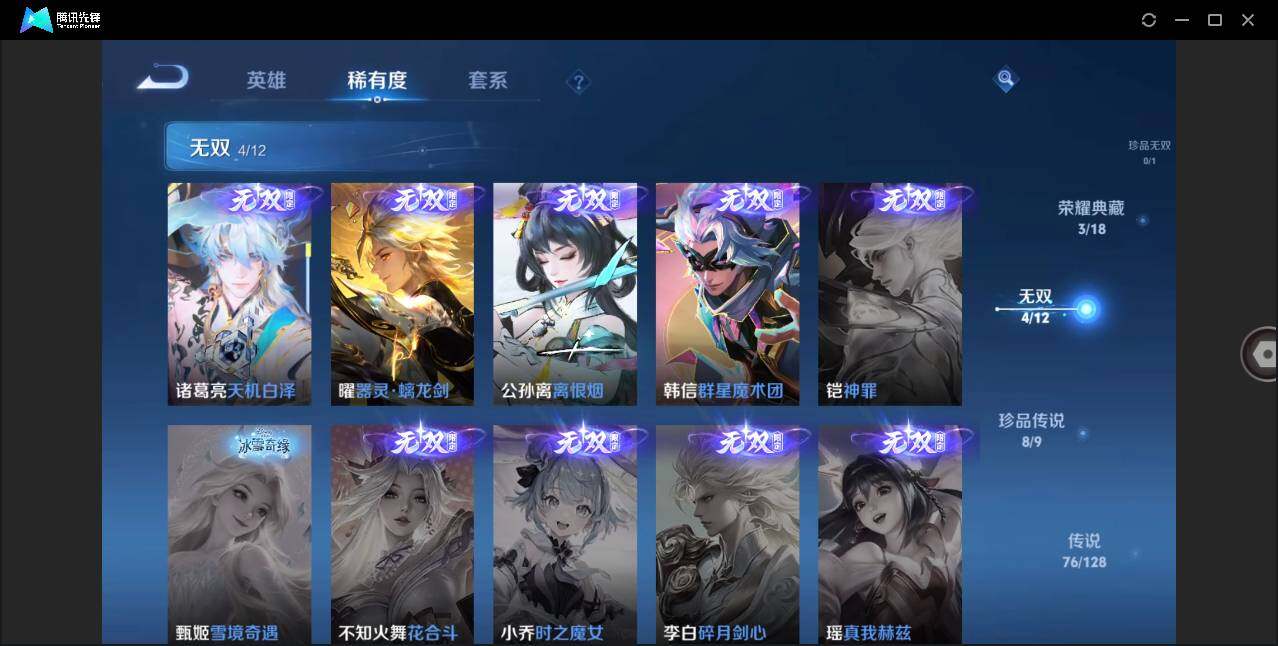 【无双皮肤】:韩信群星魔术团,公孙离离恨烟,曜器灵螭龙剑,诸葛亮天机白泽
