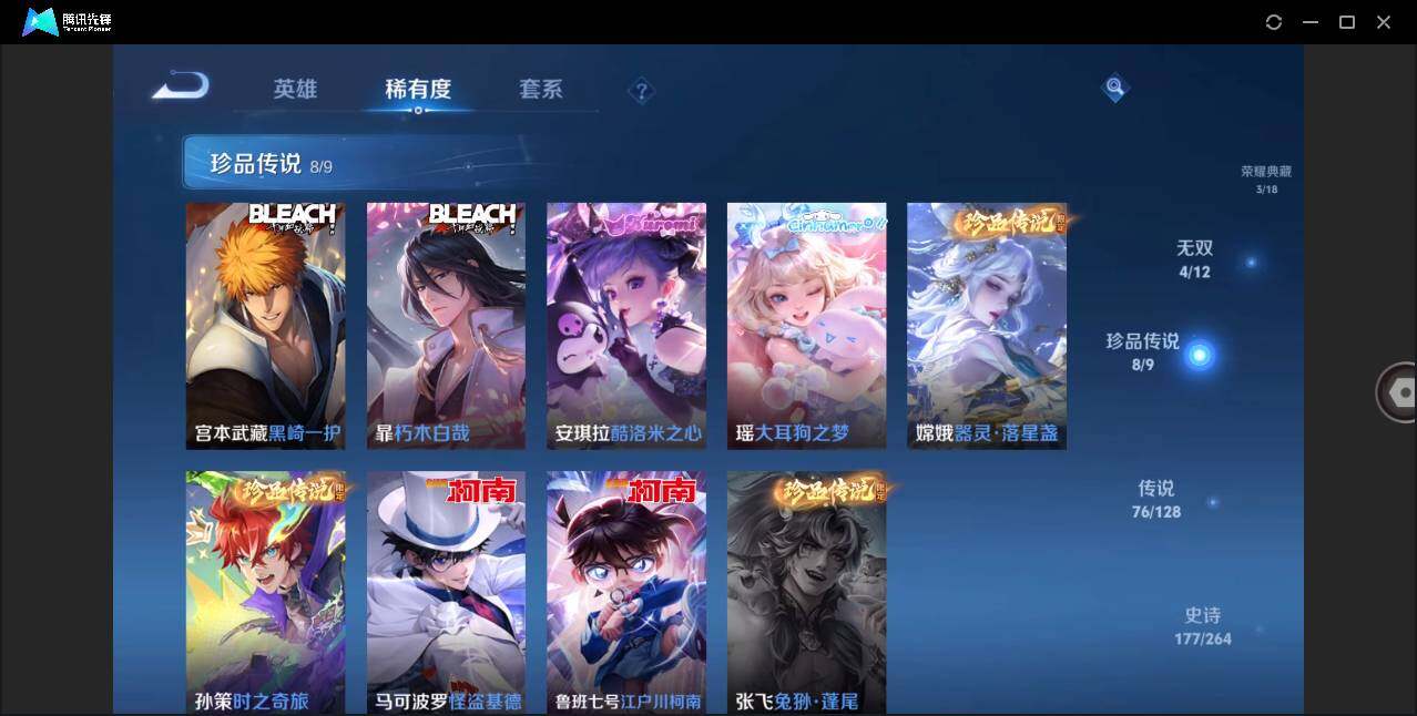 【珍品传说】:马可波罗怪盗基德,鲁班七号江户川柯南,孙策时之奇旅,嫦娥器灵落星盏,瑶大耳狗之梦,安琪拉酷洛米之心,暃朽木白哉,宫本武藏黑崎一护