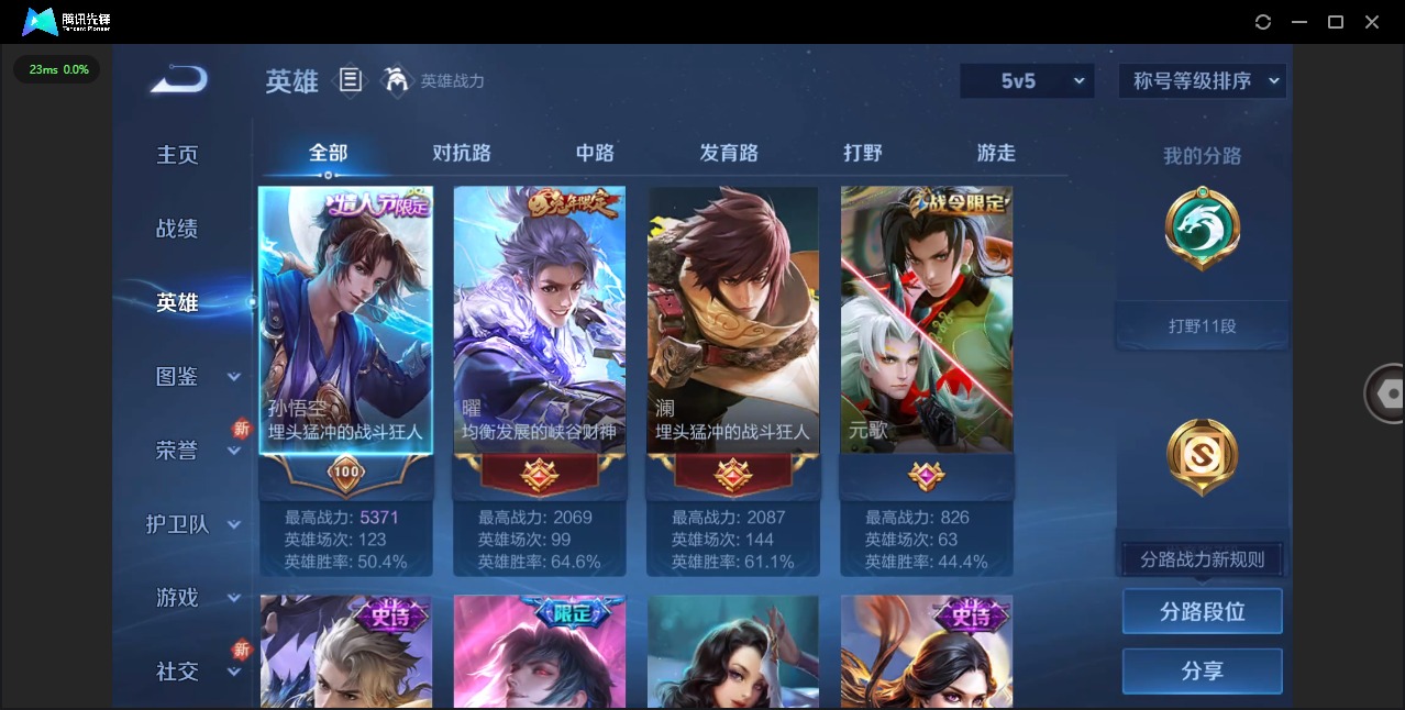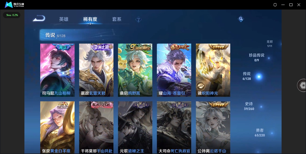 - [11608682]V5 4传说 115英雄 116皮肤 可修改实名 优质装备:黄金狮子座,黄金射手座,时之恋人-刘备(电焊工) 珍宝阁皮:胡桃夹子 限定皮:鸣野蒿,神威(电光马子),飞衡(韩信年限),梁祝,龙胆,烈魂,李小龙 史诗皮:特工魅影,千年之狐,江河有灵,冰冠公主,暗夜猫娘,末日机甲-吕布,修罗,水果甜心,天才门将,德古拉伯爵,暗隐猎兽者,鬼剑武藏,纤云弄巧,水晶猎龙者,圣诞狂欢,鹰眼统帅,未来纪元-赵云