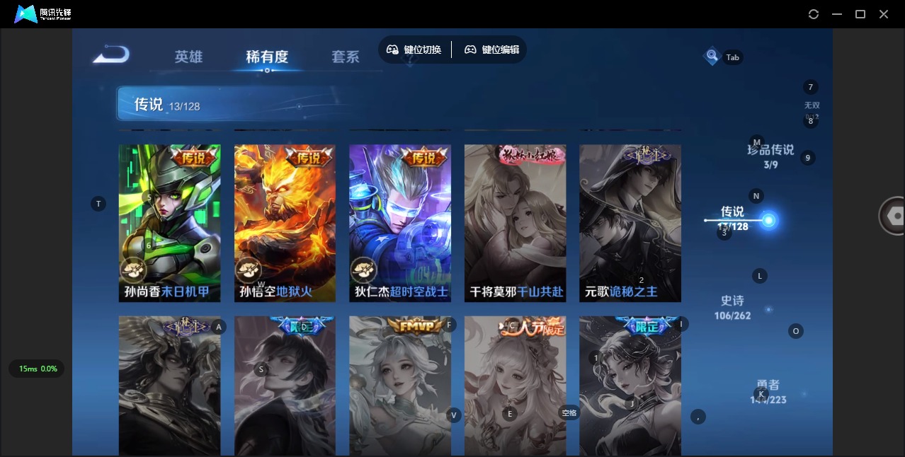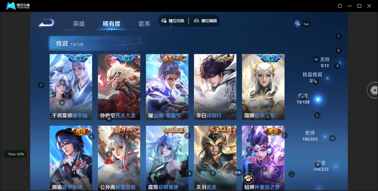 - [11579465]V7 1典藏 6传说 124英雄 210皮肤 可修改实名 优质装备:鸣剑·曳影,地狱之眼,时之恋人-刘备(电焊工),画中仙 传说皮:云诺千山,幻光神枪 珍宝阁皮:万物之道,蔷薇恋人 限定皮:愿照·千秋盛(女娲年限),遇见飞天,高山流水,五谷丰年,冰锋战神,孙行者,猪悟能,女儿国国王 史诗皮:器灵·浮梦炉,化蝶舞,龙之律动,藏狐·褐绒,戍鼓铭心,茶境仙,破空之剑,战舞者,谪仙醉月,百相守梦-百里守约,百相守梦-黄忠,紫霞仙子,苍穹之光,黄金分割率,电玩·爆裂旋风,江河有灵,蒙恬荣光圣徽,偶像歌手,魅语,冰冠公主,猫狗日记-孙策,猫狗日记-大乔,乱世虎臣,女仆咖啡,摇滚巨星,水果甜心,天才门将,星夜王子,时之奇旅-安琪拉,功夫厨神,德古拉伯爵,暗隐猎兽者,幽灵船长,鬼剑武藏,心灵战警,乐园奇幻夜,天秀·启明,地狱岩魂,拒霜思,缤纷独角兽,乘风破浪,水晶猎龙者,曙光守护者,金属风暴,原初追逐者,圣诞狂欢,圣诞恋歌,鹰眼统帅,暗夜贵公子,天秀·音浪,未来纪元-赵云