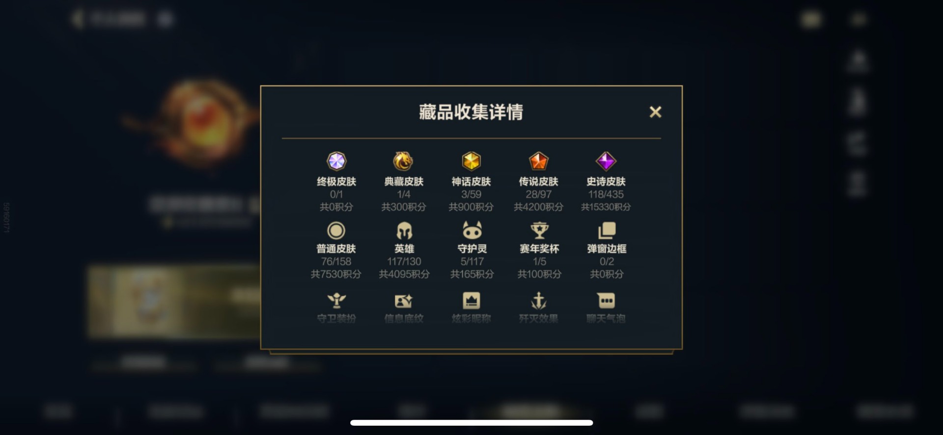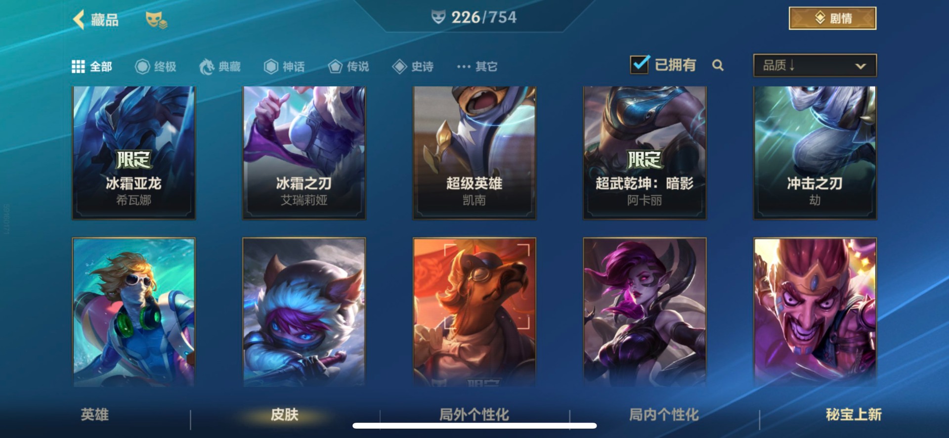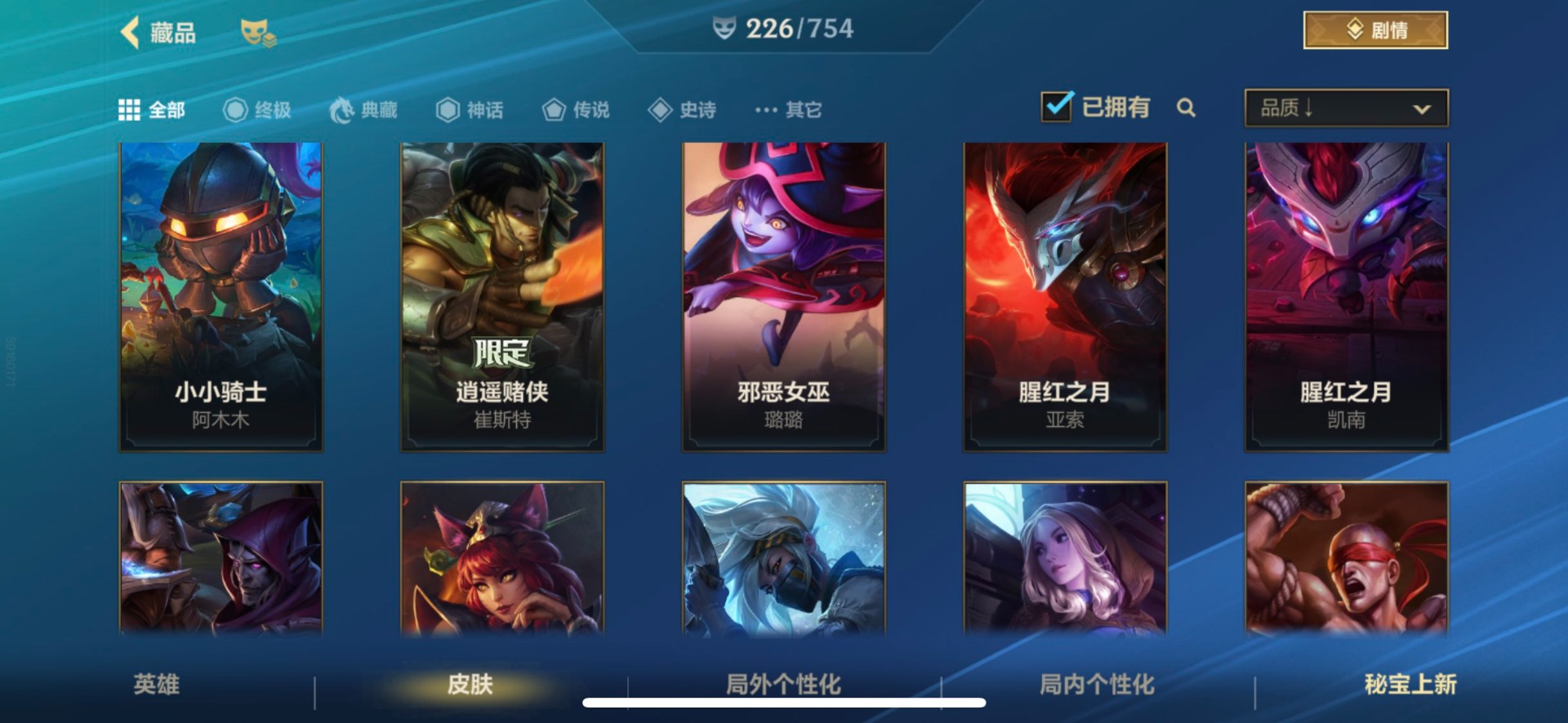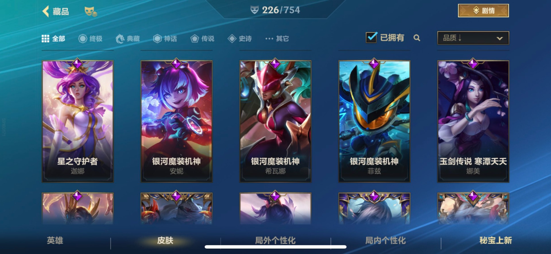 [12253410]1典藏 3神话 21限定 28传说 117史诗 226皮肤 可二次 可修改实名 优质装备:灌篮高手,黑夜使者亚索,K/DA ALLOUT萨勒芬妮,黎明使者锐雯,神龙尊者 驭风啸龙,神拳盲僧,神王诺手,水晶玫瑰拉克丝,水晶玫瑰EZ,天煞劫,西部魔影卢锡安,星域游侠卡牌,星之守护者 陨,超武乾坤:虹影,灵魂莲华锤石,涂鸦小队莎弥拉,源计划:林,源计划:泯灭,暗星女王拉克丝,霸天零式塞恩,水晶玫瑰拉克丝,星域武神贾克斯,星之守护者卡莎,灰烬骑士派克,灵魂莲华腕豪,心之钢凯隐,至臻心之钢永恩,斗魂觉醒 莎弥拉 段位:翡翠 神话皮:至臻水晶格温 限定皮肤:创星之灵,掠星魔刃,斩星魔剑,赵云子龙,烈焰美人薇恩,神龙烈焰金克丝,虎痴之拳,闭月之颜貂蝉,张辽文远,美猴王,水晶玫瑰伊泽瑞尔,水晶玫瑰永恩,水晶玫瑰蔚,水晶玫瑰琴女,关羽云长,水晶玫瑰锐雯,涂鸦小队莎弥拉,涂鸦小队艾克,吕布奉先,无与伦比剑圣 传说皮:神龙尊者 圣龙 李青,光影巨翼亚托克斯,斗魂无双亚索,黎明使者永恩 亮点:星之守护者 落