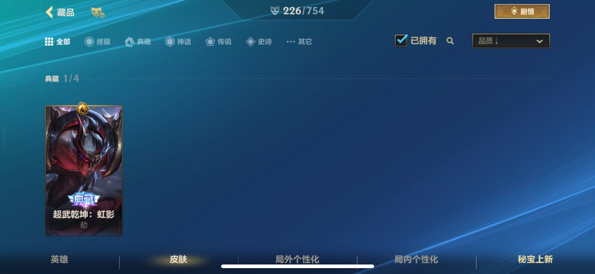 - [11524392]V9 2典藏 1无双 19传说 126英雄 308皮肤 典藏英雄武则天 可修改实名 荣耀水晶:无限飓风号(高达),活力突击 无双皮:器灵·螭龙剑 传说皮:云诺千山,乘龙·问璇玑(孙尚香年限),乘龙·淬吴钩(孙策年限),幻光神枪,李逍遥,黄金狮子座,地狱火,末日机甲-孙尚香(绿蚂蚱),一念神魔,久胜战神,云鹰飞将(小将军),绛天战甲(鸡嘴战神),超时空战士-狄仁杰,挚爱之约 珍宝阁皮:蔷薇恋人,玩趣恶龙 限定皮:愿照·岁时盈(虞姬年限),鸣野蒿,至尊宝,傲雪梅枪,时雨天司(水龙头),瑞麟志(木兰年限),遇见飞天,诗剑行,匿光决锋者,降魔,五谷丰年,冰锋战神,梁祝,李小龙,玄武志(苏烈年限),辉光之辰,孙行者,猪悟能,大圣娶亲,引擎之心,云端筑梦师,蜜橘之夏,寅虎·御盾(廉颇年限),山海·玄木吟(马可年限) 史诗皮:飞车小橘子,器灵·浮梦炉,星界特工,化蝶舞,龙之律动,芈月浮光幕影,怒海争锋,上官婉儿群星魔术团,琥珀纪元伽罗,苍穹之光,电玩小子(小书包),白龙吟,黄金分割率,特工魅影,千年之狐,电玩·爆裂旋风,真我赫兹(百里守约),冰冠公主,江河有灵,高渐离燃音魔法,偶像歌手,暗夜猫娘,无限星赏官,魅语,龙骑士(小龙虾),末日机甲-吕布,猫狗日记-孙策,乱世虎臣,节奏热浪,修罗,女仆咖啡,摇滚巨星,水果甜心,天才门将,星夜王子,心灵骇客,功夫厨神,暗隐猎兽者,幽灵船长,心灵战警,乐园奇幻夜,舞动绿茵,地狱岩魂,纤云弄巧,繁星吟游(呼啦呼啦),拒霜思,缤纷独角兽,乘风破浪,逐浪之夏,水晶猎龙者,曙光守护者,箭羽风息,金属风暴,圣诞狂欢,圣诞恋歌,鹰眼统帅,魅力维加斯,寅虎·御盾,无心,未来纪元-赵云