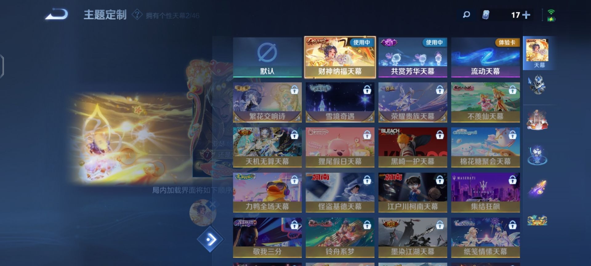 刘邦夺宝奇兵,夏侯惇朔风刀,老夫子醍醐杖,沈梦溪星空之诺,沈梦溪大漠名商,盾山御銮,苏烈千军破阵,达摩沙漠行僧,镜青焰无极,元歌云间偶戏,兰陵王金庭之子,裴擒虎擒涛扼浪,鲁班大师探海日志,明世隐疑决卦,蒙犽狂想玩偶喵,马可波罗暗影游猎,鬼谷子原初探秘者,张良古海寻踪,桑启海盐诗旅,狄仁杰万华元夜,程咬金演武夺筹,李元芳银河之约,李元芳云中旅人,弈星混沌棋,钟馗驱傩正仪
