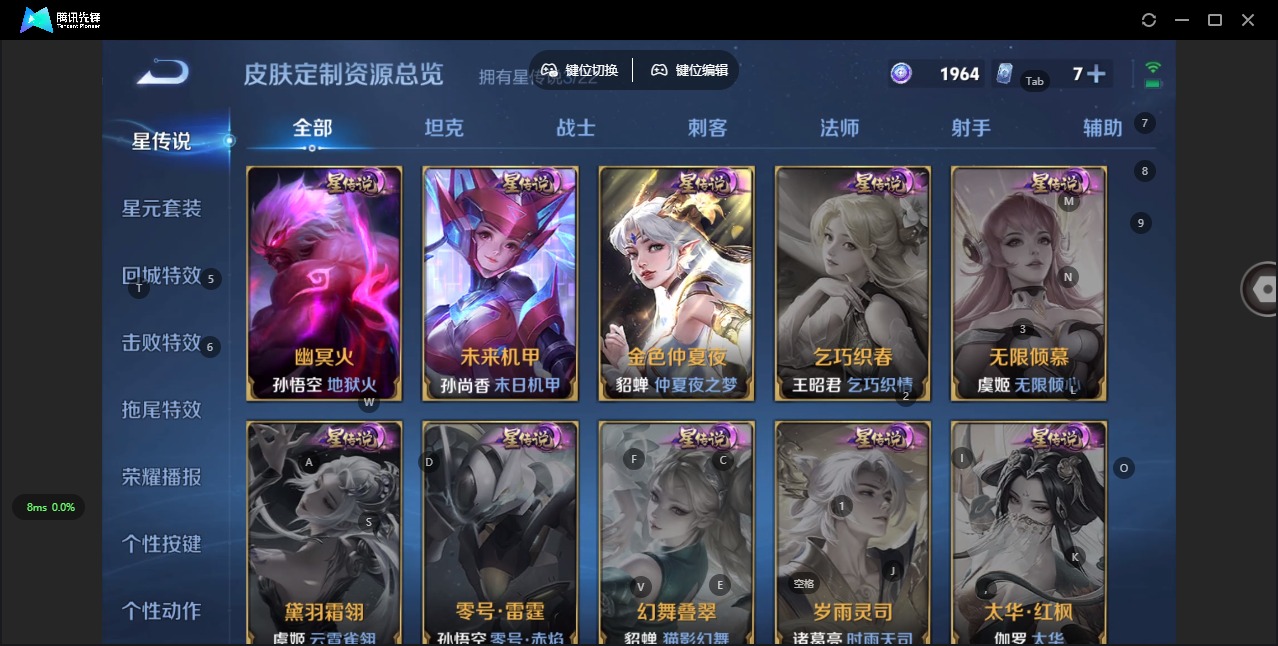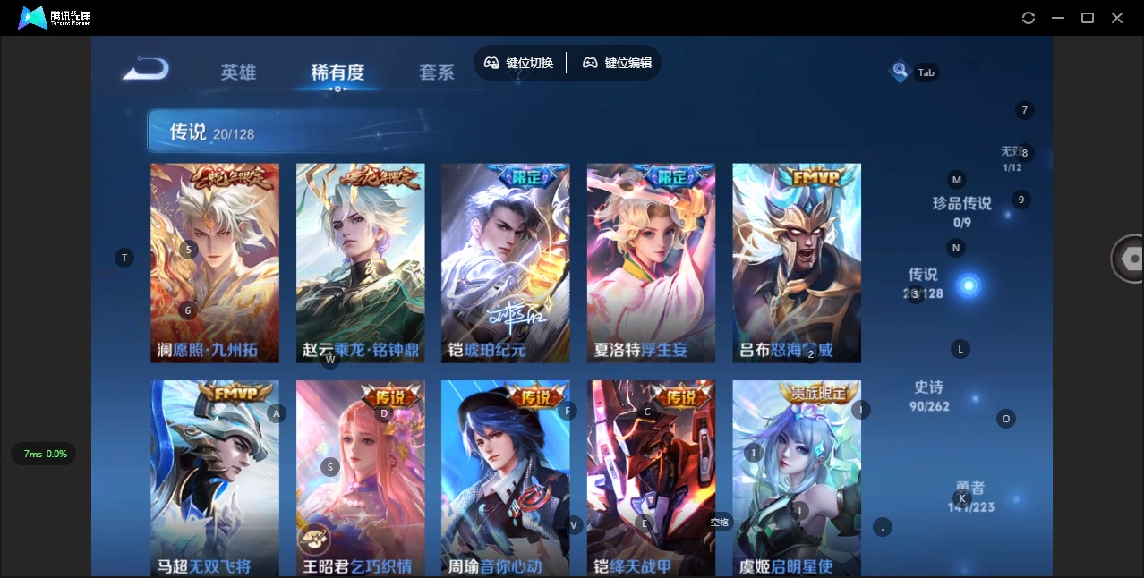 - [10550809]V7 1珍品传说 8传说 119英雄 152皮肤 可修改实名 珍品传说:大耳狗之梦 传说皮:星之鸣奏,幻光神枪,铠冥王哈迪斯,山海·炽霜斩(李信年限),地狱之眼 珍宝阁皮:妄想食味 限定皮:愿照·九州拓(澜年限),愿照·众生和(妲己年限),逐霄战戟,鸣野蒿,李小龙,山海·玄木吟(马可年限) 史诗皮:茶境仙,器灵·浮梦炉,糖绘人间,鸭鸭历险记-刘禅,芈月浮光幕影,化蝶舞,紫霞仙子,千年之狐,高渐离燃音魔法,青蛇,偶像歌手,末日机甲-吕布,时之恋人-孙尚香,节奏热浪,女仆咖啡,水果甜心,星夜王子,舞动绿茵,地狱岩魂,逐浪之夏,曙光守护者,箭羽风息,圣诞狂欢,圣诞恋歌,鹰眼统帅,魅力维加斯,赏金猎手,无心,未来纪元-赵云