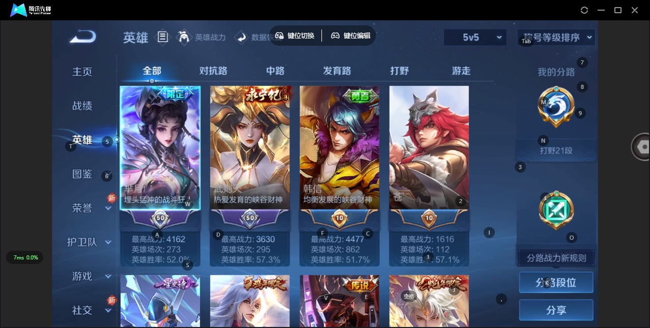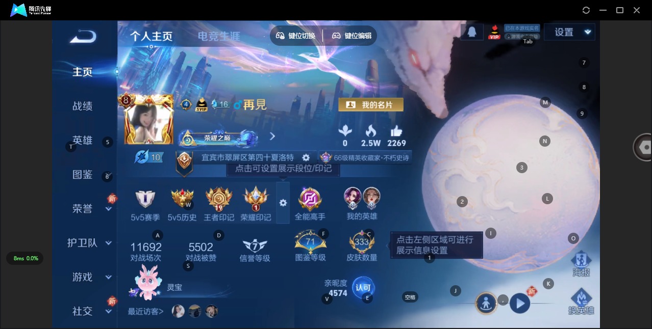 - PX_2094781-贵族等级: V5 英雄数: 94 皮肤数: 50 传说皮: 霜月吟,澜逐花归海