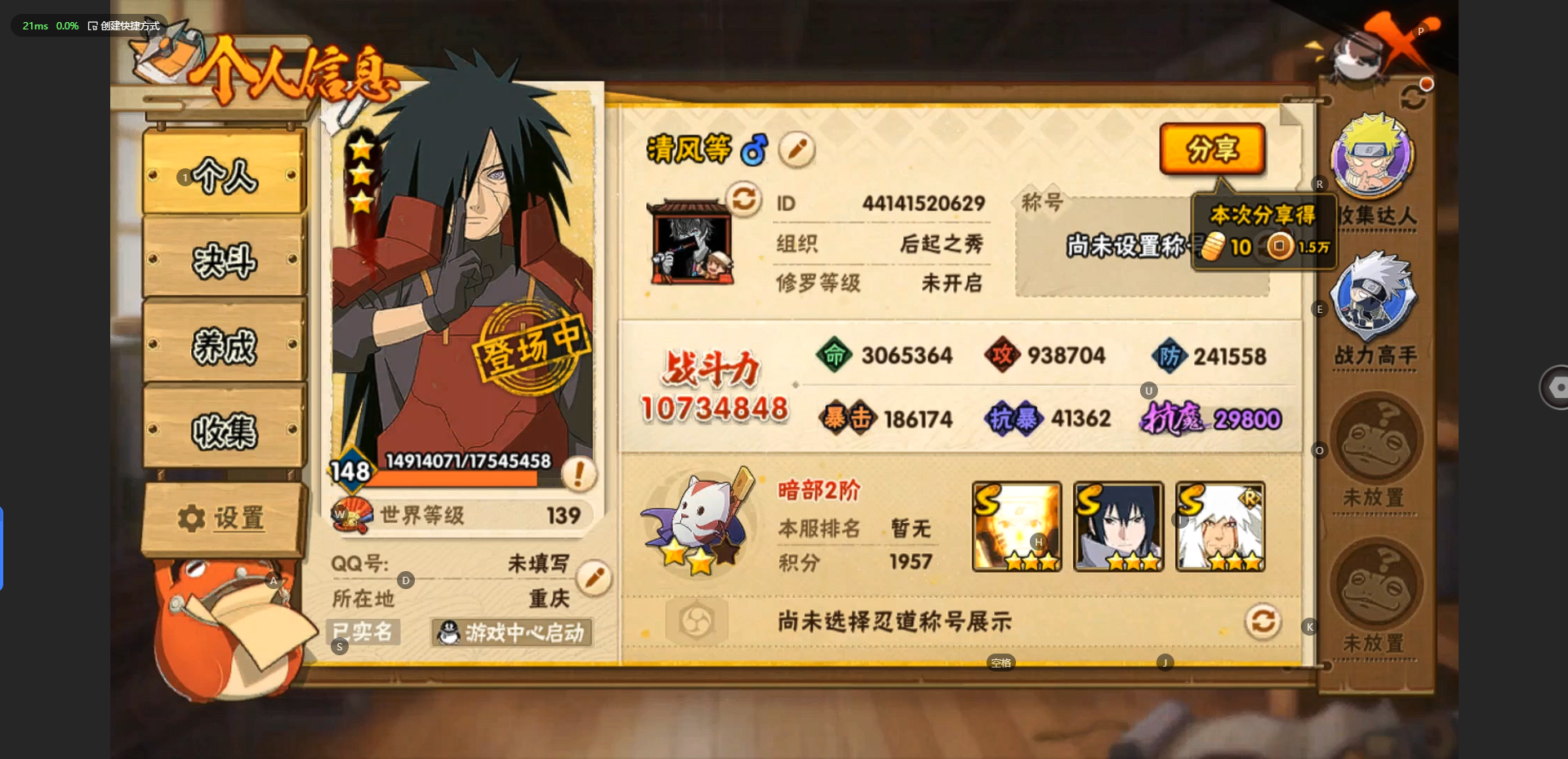 [12255243]V10 17S 可二次 S级忍者:宇智波止水「须佐能乎」,宇智波斑「秽土转生·解」,宇智波佐助「永恒万花筒」,神秘面具男 「红夜之刃」,春野樱 「忍界大战」,漩涡鸣人 「九喇嘛连结」,宇智波带土 「忍界大战」,千手柱间「秽土转生」,自来也 「舞之豪杰」,宇智波鼬「秽土转生」,宇智波斑「秽土转生」,“宇智波斑” 「白面具」,波风水门「秽土转生」,长门「秽土转生」,佩恩「天道」,波风水门,大蛇丸