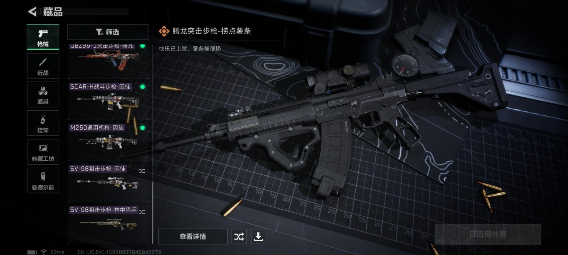 [12255915]总资产:136.4M 10传说枪械 哈夫币:120K 可二次 可修改实名 社交场景限制 烽火地带段位:无段位 全面战场段位:无段位 传说武器皮肤:UZI冲锋枪-特斯拉线圈,AWM狙击步枪-捞点薯条,腾龙突击步枪-捞点薯条,93R-捞点薯条,AK-12突击步枪-特斯拉线圈,SR-3M紧凑突击步枪-特斯拉线圈,勇士冲锋枪-能天使-午夜邮差,复合弓-黑-天际线,M4A1突击步枪-阿米娅,CAR-15突击步枪-阿米娅 史诗武器皮肤:SG552突击步枪-深海恐惧,QJB201轻机枪-Old Habits,SV-98狙击步枪-林中猎手,M250通用机枪-囚徒,SV-98狙击步枪-囚徒,SCAR-H战斗步枪-囚徒,QBZ95-1突击步枪-曙光