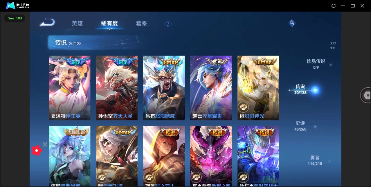 - [12114906]V6 8传说 123英雄 165皮肤 可修改实名 女号 优质装备:绛天战甲(鸡嘴战神),乞巧织情,淬星耀世,山海·琳琅生(小乔年限) 传说皮:幻光神枪 珍宝阁皮:蔷薇恋人 限定皮:愿照·岁时盈(虞姬年限),愿照·众生和(妲己年限),逐霄战戟,陌上桑,鸣野蒿,至美·乘鲤谣,梁祝 史诗皮:器灵·浮梦炉,星界战将,星界特工,破空之剑,芈月浮光幕影,怒海争锋,苍穹之光,千年之狐,浮梦罗烟,江河有灵,百解令(蒙犽),电玩·爆裂旋风,偶像歌手,暗夜猫娘,女仆咖啡,水果甜心,天才门将,星夜王子,心灵骇客,时之奇旅-安琪拉,德古拉伯爵,暗隐猎兽者,幽灵船长,鬼剑武藏,心灵战警,拒霜思,缤纷独角兽,水晶猎龙者,唤灵魅影,原初追逐者,圣诞狂欢,鹰眼统帅,魅力维加斯,未来纪元-赵云