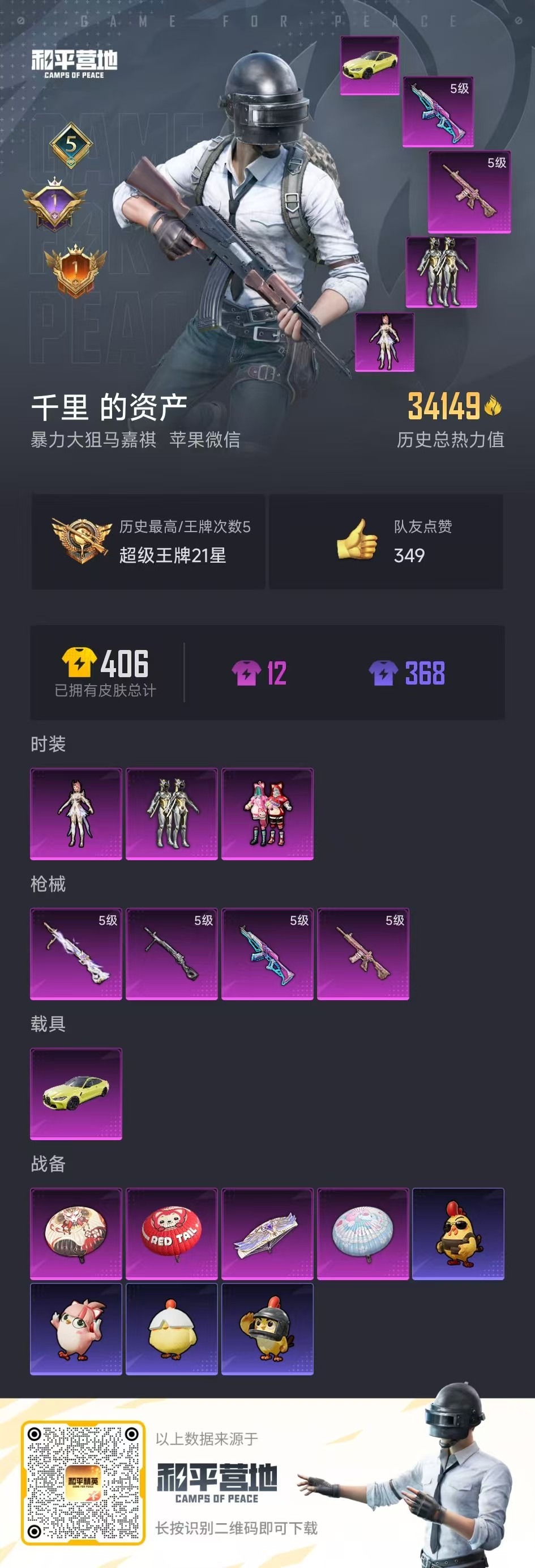 - [12208874]【商品标题】:安卓 手Q-8粉装-3特效枪-3载具-1粉色飞行器-48732热力值-6王牌印记-103套装-122枪皮 【热门品类】:套装-浪漫天命,套装-龟仙人,套装-暗影哥特,套装-粉红小猪 【粉色载具】:特斯拉Model 3(冷光银),兰博基尼Aventador SVJ(翡翠绿),兰博基尼URUS(明艳黄) 【粉色套装】:粉装-虎啸骄阳,粉装-幻情紫藤,粉装-青葱仙萝,粉装-天之羽翼,粉装-焦糖拿铁,粉装-碧影闪光,粉装-冷魅冰骑,超级赛亚人-孙悟空 【粉色枪皮等级】:SCAR-L-青春物语(五级),M416-心之恋语(四级),Mini14-龙虾霸霸(五级) 【粉色枪皮】:SCAR-L-青春物语,M416-心之恋语,Mini14-龙虾霸霸 【粉色飞行器】:天之羽翼飞行器 【粉色降落伞】:精灵迷巫降落伞,龙虾霸霸降落伞,绿意幻情降落伞,流星咚咚降落伞,暗星紫秘降落伞,天之羽翼降落伞,焦糖拿铁降落伞,青春物语降落伞 【稀有套装】:套装-龟仙人 【稀有枪皮】:AKM-彩虹符号,AKM-破晓战魂,AKM-虎虎生威,AKM-龙的传人,M16A4-幻世战舞者,M16A4-快乐主宰,M16A4-龙虾霸霸,SCAR-L-玉兔迎春,M416-红色方程式,M416-蓝色火焰,GROZA-异彩先驱,GROZA-田园牧歌,GROZA-青春物语,AUG-天降萌叽,AUG-耀粉歌者,QBZ-彩虹符号,QBZ-飞驰魅影,M762-快乐主宰,M762-拳皇97,M762-瑞龙福将,Mk47-洛神天依,G36C-时空追击者,AC-VAL-天降萌叽,蜜獾-天降萌叽,蜜獾-娇憨猪猪,UZI-天降萌叽,UZI-娇憨猪猪,UZI-炫彩节奏,UZI-金风玉露,UMP45-快乐主宰,UMP45-时空追击者,UMP45-涂山之恋,UMP45-生命誓言,Vector-生命誓言,Vector-田园牧歌,Vector-龙虾霸霸,汤姆逊-勇闯险境,汤姆逊-天降萌叽,汤姆逊-异彩先驱,汤姆逊-耀粉歌者,MP5K-异彩先驱,P90-飞驰魅影,Kar98K-勇闯险境,Kar98K-红色方程式,Kar98K-飞驰魅影,M24-冰封烈焰,SKS-勇闯险境,SKS-天之羽翼,SKS-时空追击者,SKS-未来歌姬,SKS-焦糖拿铁,VSS-田园牧歌,Mini14-异彩先驱,Mini14-春暖花开,Mk14-暗星紫秘,Win94