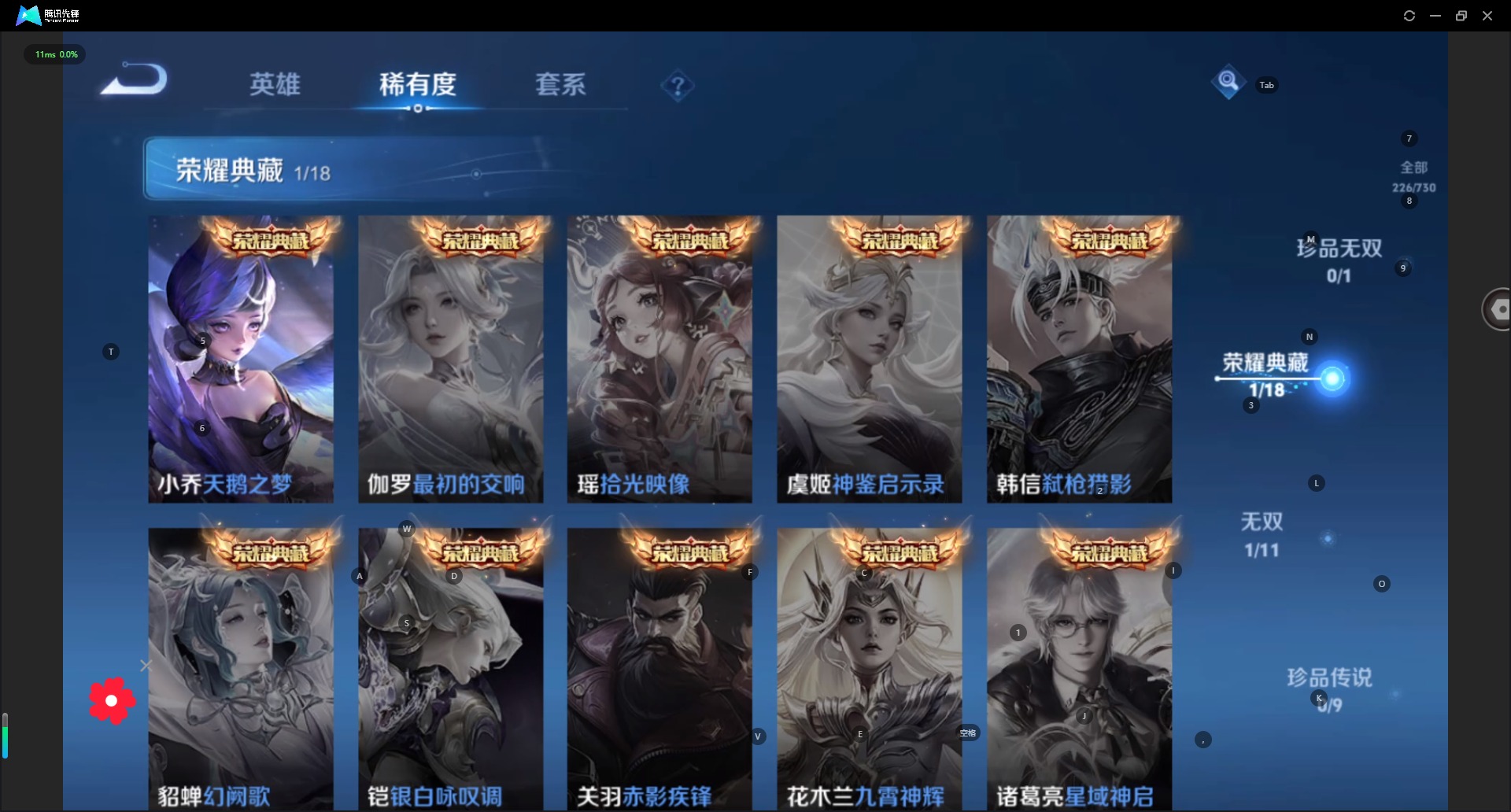 - [11678083]V8 1典藏 6传说 123英雄 277皮肤 可修改实名 优质装备:鸣剑·曳影,黄金射手座,猫影幻舞,地狱火 珍宝阁皮:蔷薇恋人,女武神 限定皮:鸣野蒿,至尊宝,凤求凰(白切鸡),凤凰于飞,飞衡(韩信年限),高山流水,五谷丰年,青龙志(铠年限),梁祝,岱宗(典韦年限),李小龙,玄武志(苏烈年限),辉光之辰 史诗皮:龙之律动,蔬乡物语(鲁班七号),琥珀纪元伽罗,紫霞仙子,苍穹之光,白龙吟,特工魅影,千年之狐,永昼,电玩·爆裂旋风,真我赫兹(百里守约),匿光侦查者,江河有灵,雪夜绮愿(周瑜),百解令(蒙犽),高渐离燃音魔法,龙骑士(小龙虾),暗夜猫娘,无限星赏官,猫狗日记-孙策,时之恋人-孙尚香,乱世虎臣,节奏热浪,女仆咖啡,水果甜心,绅士熊喵,星夜王子,心灵骇客,功夫厨神,德古拉伯爵,暗隐猎兽者,幽灵船长,鬼剑武藏,心灵战警,舞动绿茵,地狱岩魂,纤云弄巧,繁星吟游(呼啦呼啦),拒霜思,缤纷独角兽,乘风破浪,逐浪之夏,月团寄思,水晶猎龙者,曙光守护者,唤灵魅影,金属风暴,圣诞狂欢,圣诞恋歌,鹰眼统帅,魅力维加斯,未来纪元-赵云,玫瑰异探