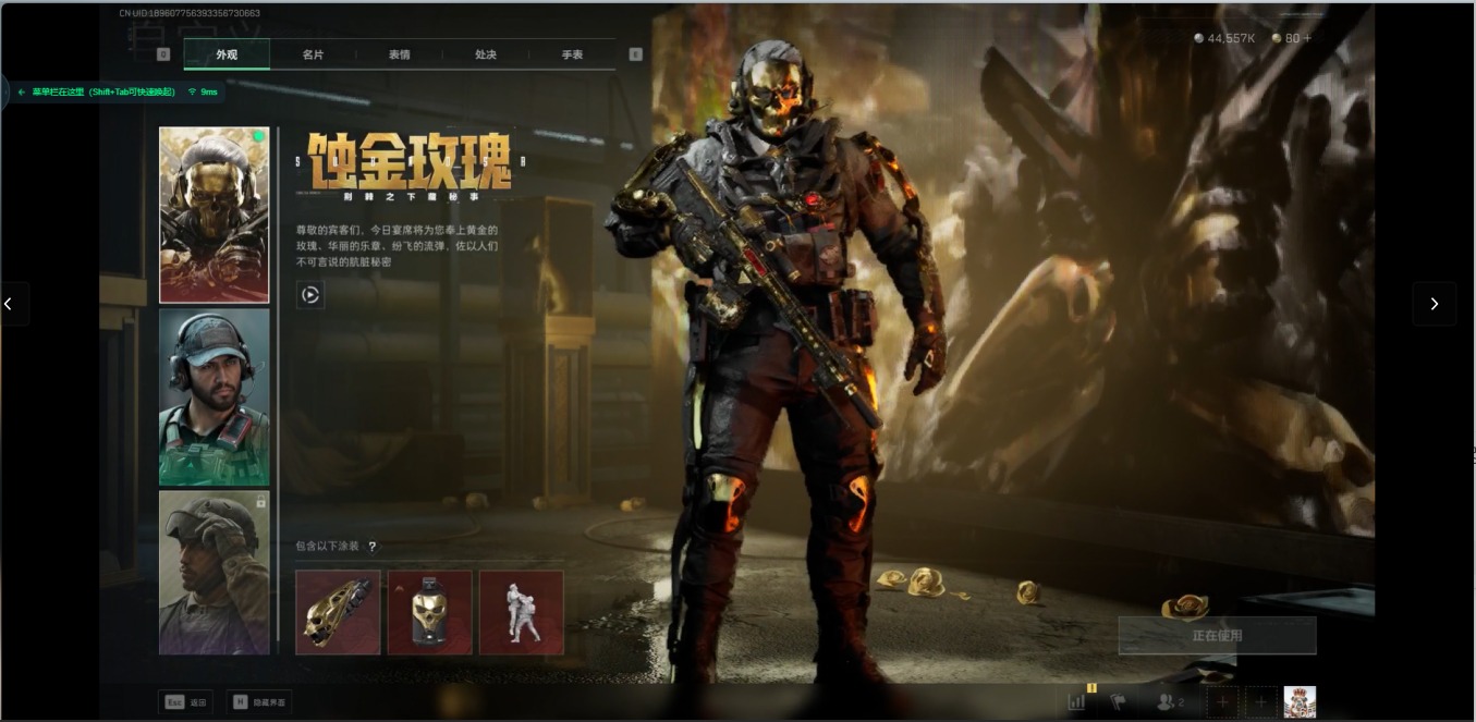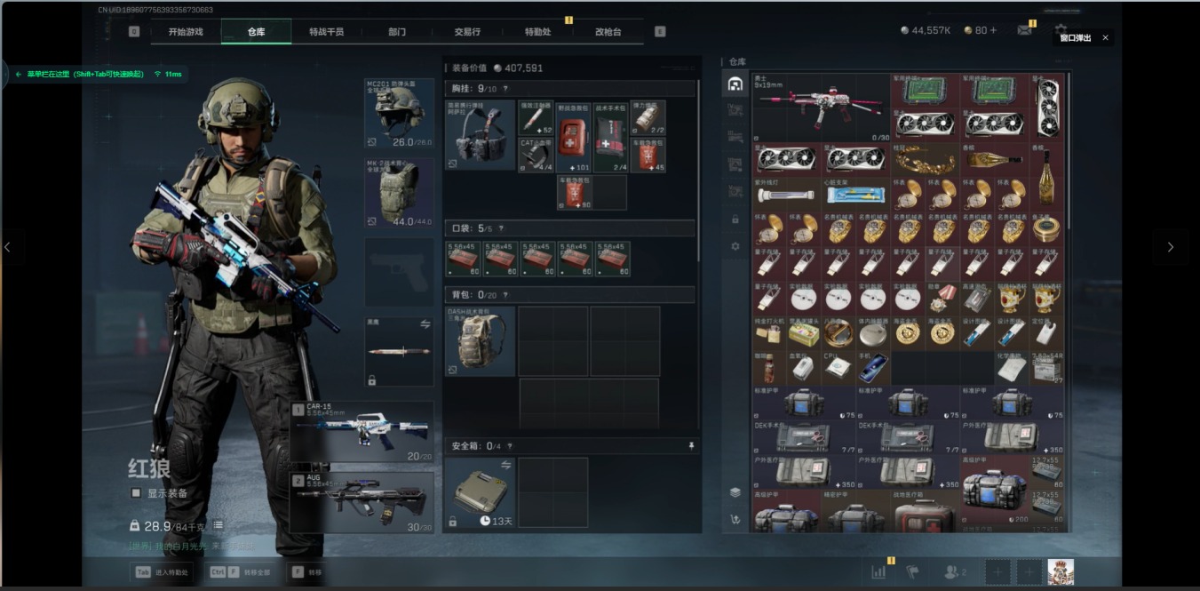 [12256177]总资产:138.5M 1干员外观 11传说枪械 哈夫币:44.557K 进阶安全箱(9.17到期) 可二次 可修改实名 烽火地带段位:铂金 全面战场段位:无段位 传说武器皮肤:SR-25射手步枪-水墨云图,SCAR-H战斗步枪-铁艺苍穹,SMG45冲锋枪-骑士,AWM狙击步枪-捞点薯条,腾龙突击步枪-捞点薯条,93R-捞点薯条,勇士冲锋枪-能天使-午夜邮差,Vector冲锋枪-能天使-午夜邮差,CAR-15突击步枪-阿米娅,AK-12突击步枪-夜鹰,M4A1突击步枪-蚀金玫瑰 干员外观:红狼-蚀金玫瑰