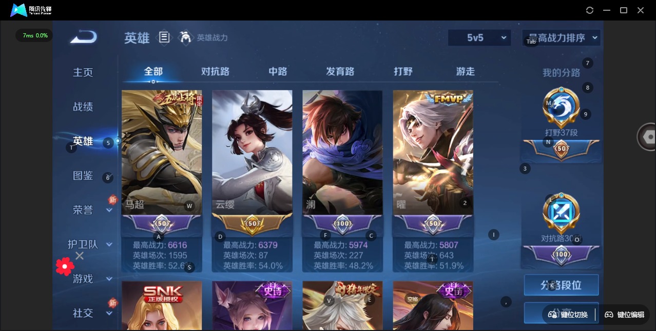 - PX_2064238-实名: 可修改 贵族等级: V2 英雄数: 105 皮肤数: 80 传说皮: 云鹰飞将,幻光神枪 限定皮: 鸣野蒿,愿照·九州拓