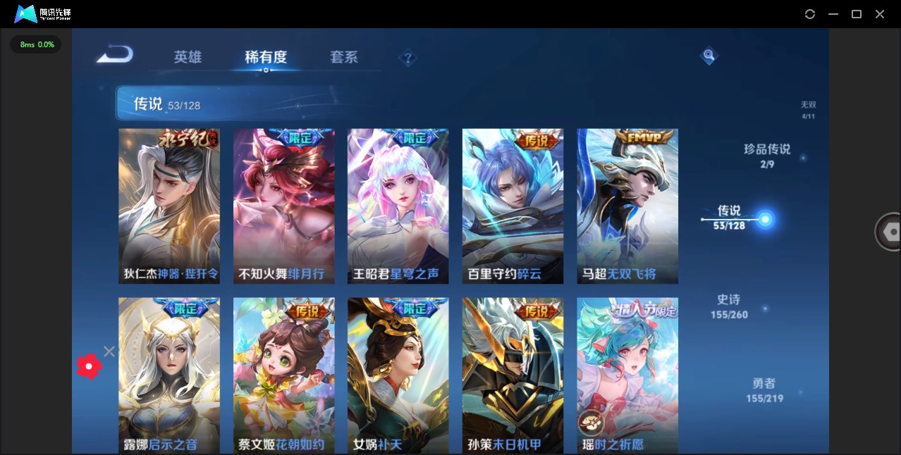 - [12295955]V10 3典藏 1珍品无双 4无双 1珍品传说 46传说 125英雄 492皮肤 可修改实名 优质装备:馥梦繁花,全息碎影(猴子典藏),弑枪猎影(韩信典藏),神器·明辉仪,青丘·九尾(妲己无双),碎月剑心(李白无双),花合斗,最初的交响(伽罗典藏),酷洛米之心,黄金狮子座,黄金射手座,冠军飞将,云鹰飞将(小将军),绛天战甲(鸡嘴战神),黄金白羊座,猫影幻舞,久胜战神,炽阳神光,一念神魔,云霓雀翎,末日机甲-孙尚香(绿蚂蚱),地狱火,仲夏夜之梦(大飞蛾),音你心动-小乔,零号·赤焰,地狱之眼,音你心动-周瑜,李逍遥,乞巧织情,时之恋人-刘备(电焊工),游龙清影(小青龙),淬星耀世,超时空战士-狄仁杰,花朝如约(花篮子),音你闪耀(rap皮),神器·狴犴令,神器·明辉仪,青丘·九尾,电玩·雷克斯,艾琳觅芳踪,黄金天蝎座 传说皮:铠冥王哈迪斯,幻光神枪 珍宝阁皮:妄想食味,胡桃夹子,玩趣恶龙 限定皮:逐霄战戟,鸣野蒿,至尊宝,凤求凰(白切鸡),凤凰于飞,太华(伽罗年限),武陵仙君(小桃花),异界灵契(白毛香),星穹之声,绯月行,白鹤梁神女,魔法小厨娘,白晶晶,时雨天司(水龙头),神威(电光马子),飞衡(韩信年限),瑞麟志(木兰年限),高山流水,齐天大圣,匿光决锋者,五谷丰年,青龙志(铠年限),冰锋战神,武圣,天狼运算者,梁祝,御风骁将(吕布年限),岱宗(典韦年限),天狼溯光者,虎魄,天狼征服者,奔雷神使(牛魔年限),天狼绘梦者,李小龙,逐梦之影,玄武志(苏烈年限),朱雀志(守约年限),辉光之辰,如梦令-后羿,霸王别姬-项羽,霸王别姬-虞姬,奇迹圣诞,孙行者,猪悟能,大圣娶亲,引擎之心,天魔缭乱,乒乒小将,神奇女侠,无尽星芒,深海之息(深海大菠萝),唐三藏,时之奇旅-妲己,神器·万象笔,梦圆繁星 史诗皮:鸭鸭历险记-刘禅,化蝶舞,星界战将,灵蛊蚀心,龙之律动,小牛鸭,石田雨龙,茶境仙,破空之剑,东方月初,蒙犽顽岩魄,埋骨钱,芈月浮光幕影,怒海争锋,谪仙醉月,决胜骁骑,蔬乡物语(鲁班七号),琥珀纪元伽罗,百相守梦-百里守约,遇见神鹿,紫霞仙子,苍穹之光,电玩小子(小书包),白龙吟,黄金分割率,特工魅影,千年之狐,电玩·兔顽号,匿光破解者,百相守梦(刘备),百相守梦(关羽),电玩·爆裂旋风,浮梦罗烟,匿光侦查者,江河有灵,百解令(蒙犽),高渐离燃音魔法,银翎春语,偶像歌手