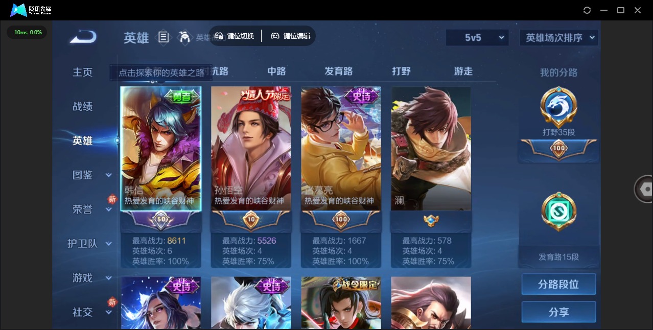 - [11796614]V5 2传说 115英雄 104皮肤 可修改实名 女号 优质装备:地狱火 珍宝阁皮:玩趣恶龙 限定皮:鸣野蒿,遇见飞天,梁祝,李小龙,大圣娶亲 史诗皮:特工魅影,千年之狐,江河有灵,水果甜心,德古拉伯爵,暗隐猎兽者,幽灵船长,鬼剑武藏,繁星吟游(呼啦呼啦),乘风破浪,曙光守护者,金属风暴,鹰眼统帅,魅力维加斯,未来纪元-赵云