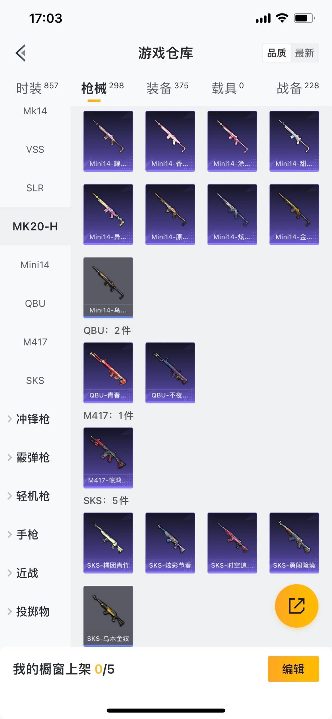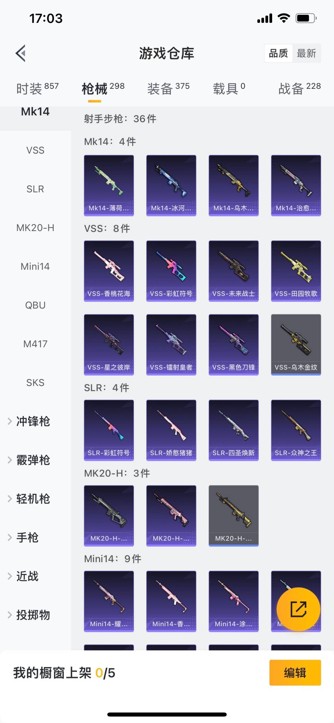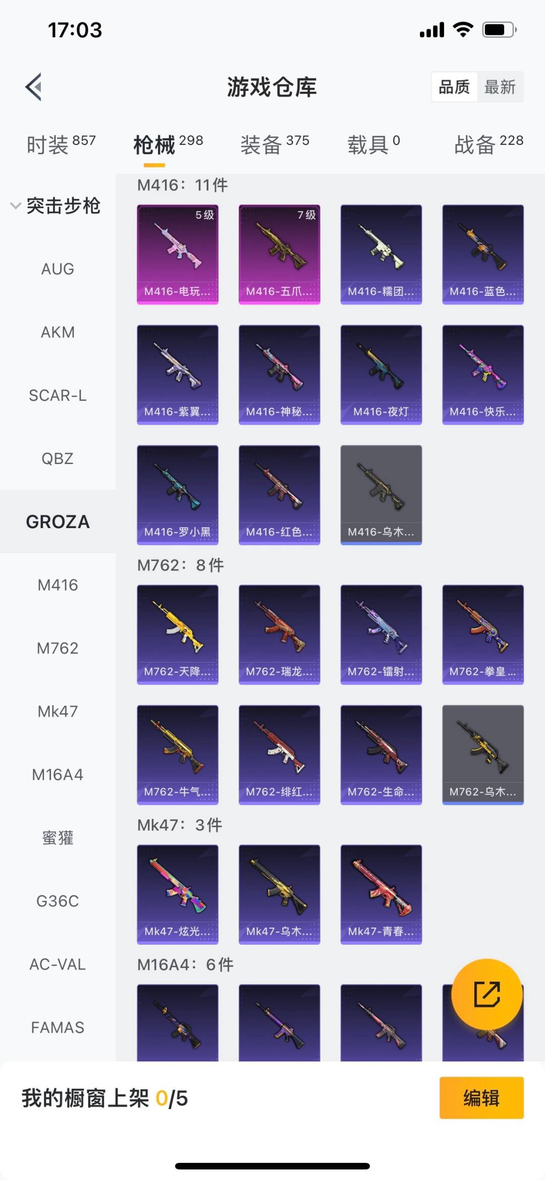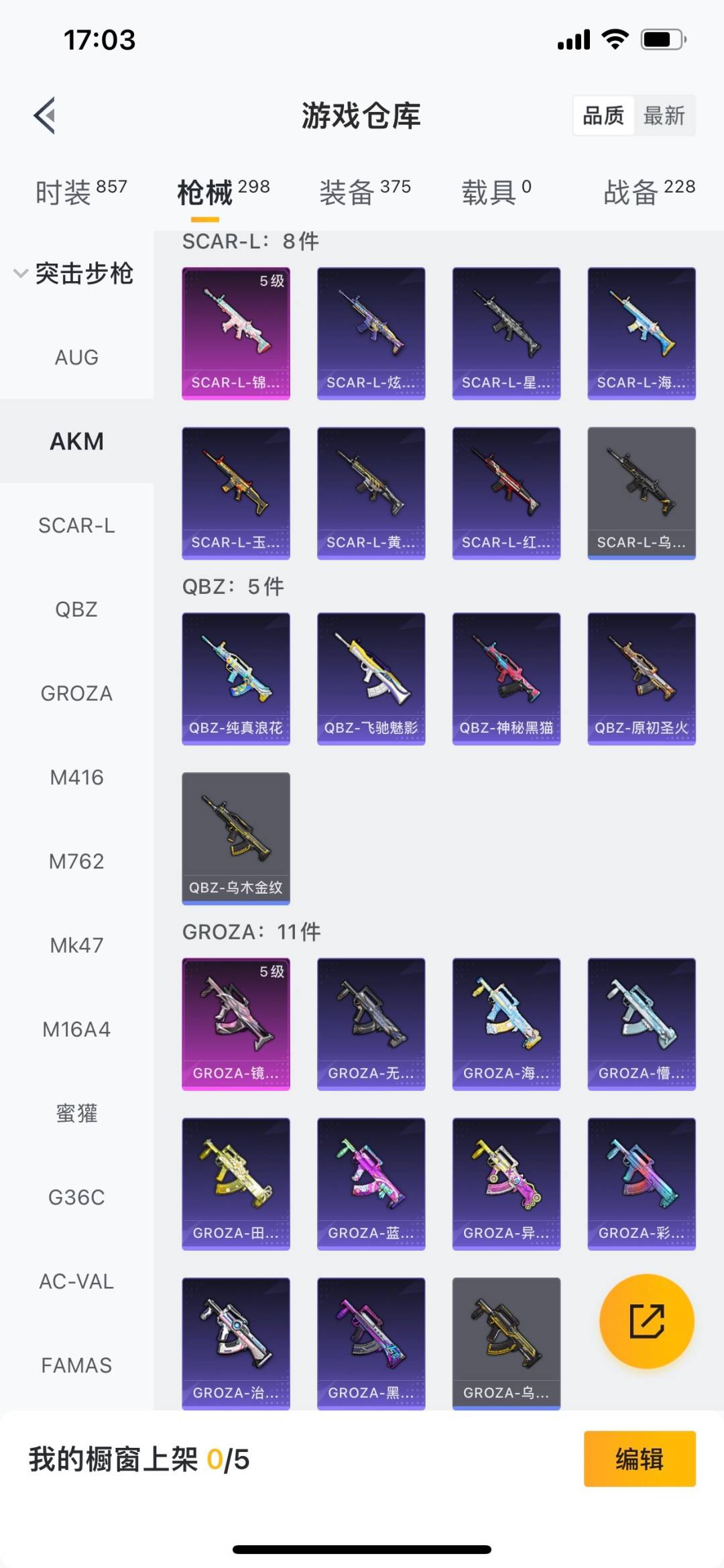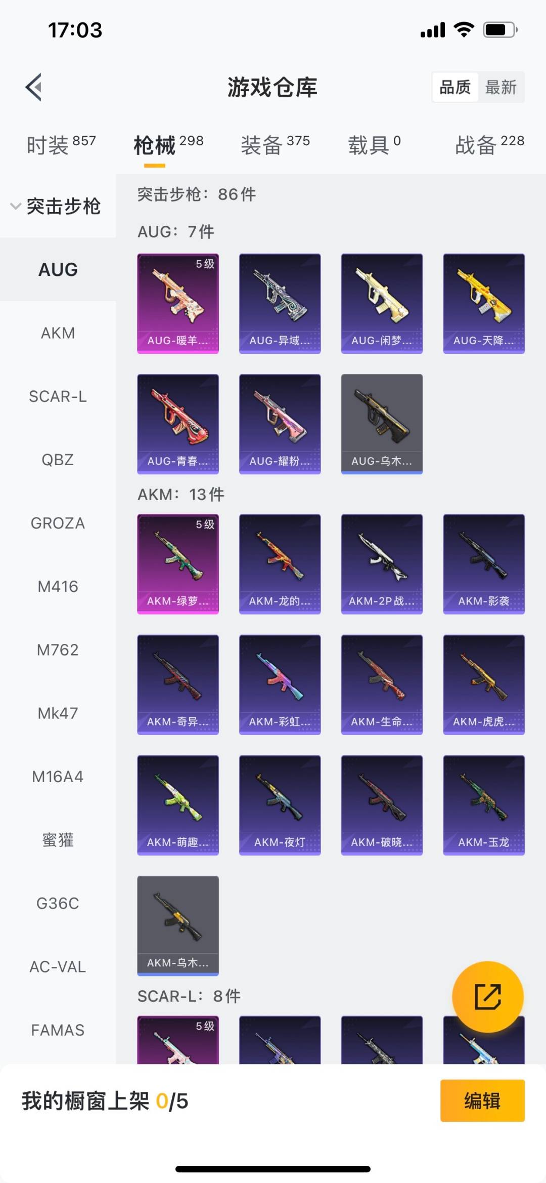 AUG-暖羊咩咩,AKM-绿萝繁花,SCAR-L-锦绣绵绵,GROZA-镜光银凌,M416-五爪金龙,M416-电玩时刻,Kar98K-巳巳如意,UMP45-量子极限