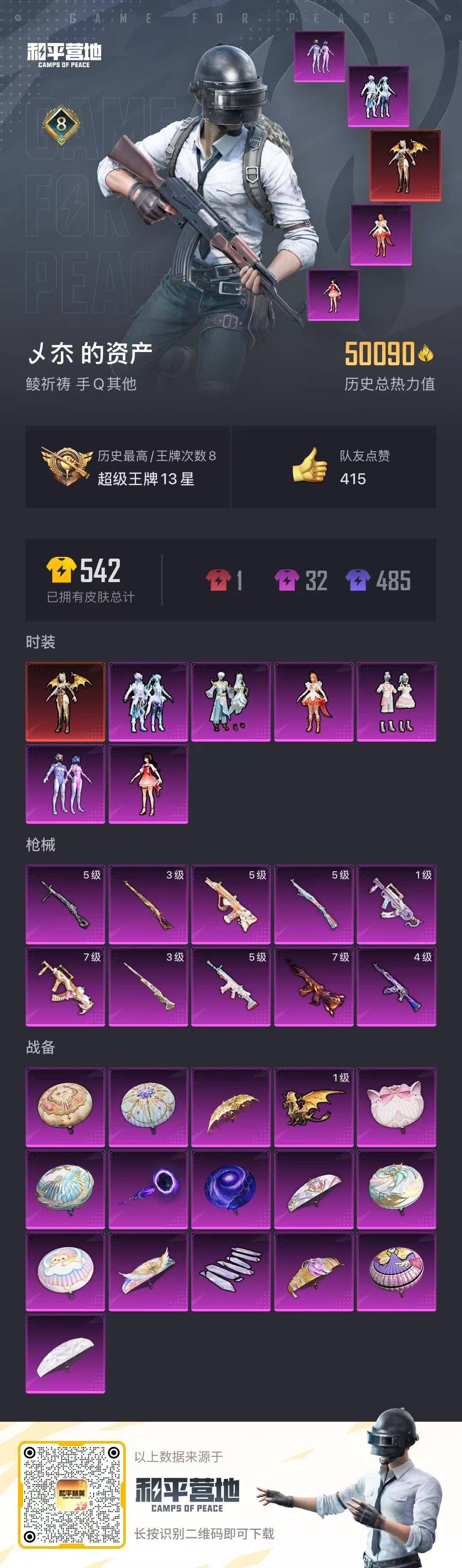 AKM-星际浪客,SCAR-L-锦绣绵绵,M416-风花雪月,GROZA-巴啦啦小魔仙,GROZA-焦糖拿铁,AUG-暖羊咩咩,Kar98K-圣域龙灵,Kar98K-巳巳如意,M24-镜域双华