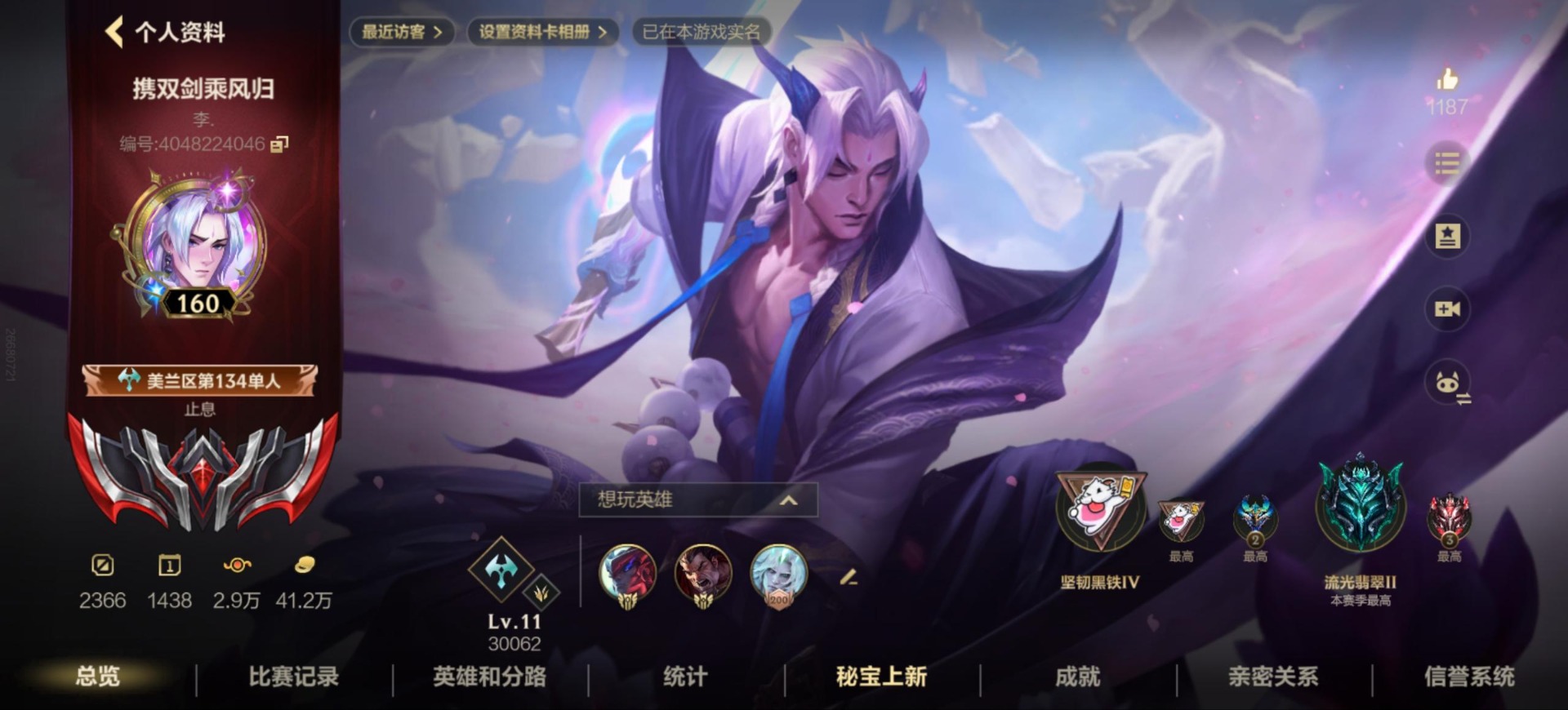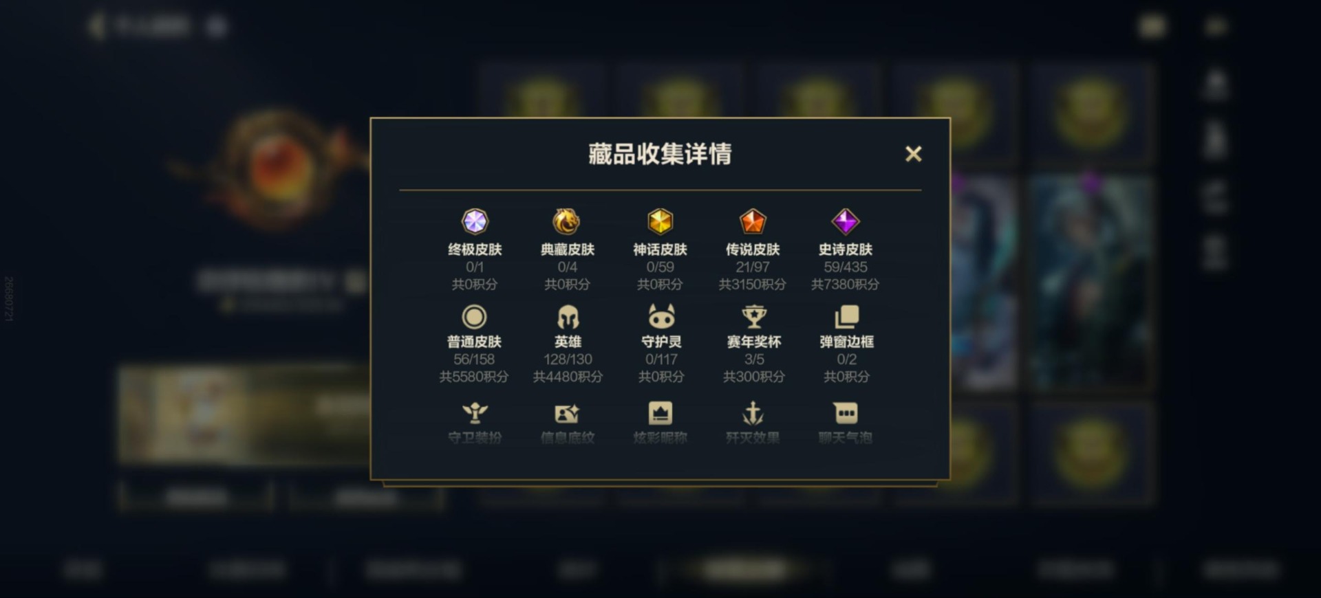 - PX_2091357-实名: 可修改 贵族等级: V6 英雄数: 68 皮肤数: 67 珍品传说: 大耳狗之梦 传说皮: 仲夏夜之梦,音你心动-小乔 限定皮: 至美·乘鲤谣,愿照·众生和